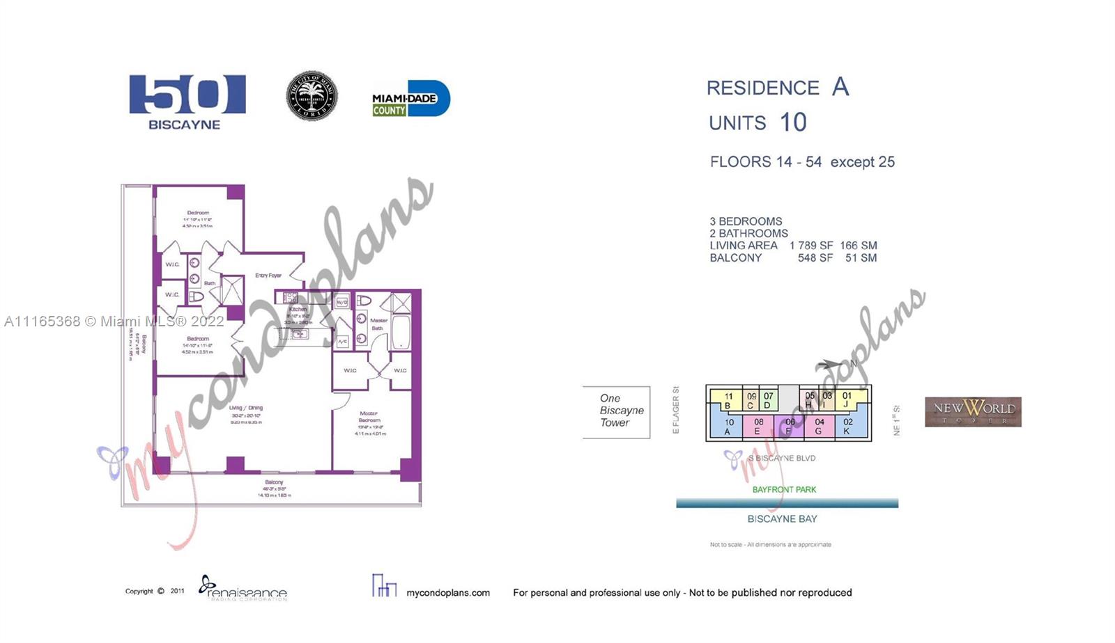 Are you looking for a unit in a phenomenal building,that has spectacular views,great amenities,is impeccably maintained,has a spacious floor plan & a huge balcony?Well you've come to the right place! 2110 at 50 Biscayne has it all.Corner unit features 1789 sq ft of living area plus 548 sq ft of wrap around balcony,24x24 marble floors that were just polished & sealed,kitchen with high end bosch appliances,living areas that are very open & spacious,both bathrooms have double sinks & large showers.The Master bath also has a jacuzzi tub.Every room has ample closets but the master features two walk in closets.This unit is a split plan with foyer entryway,two bedrooms on one side & the master on another.Breathtaking views from every angle.You don't want to miss seeing this property in person!