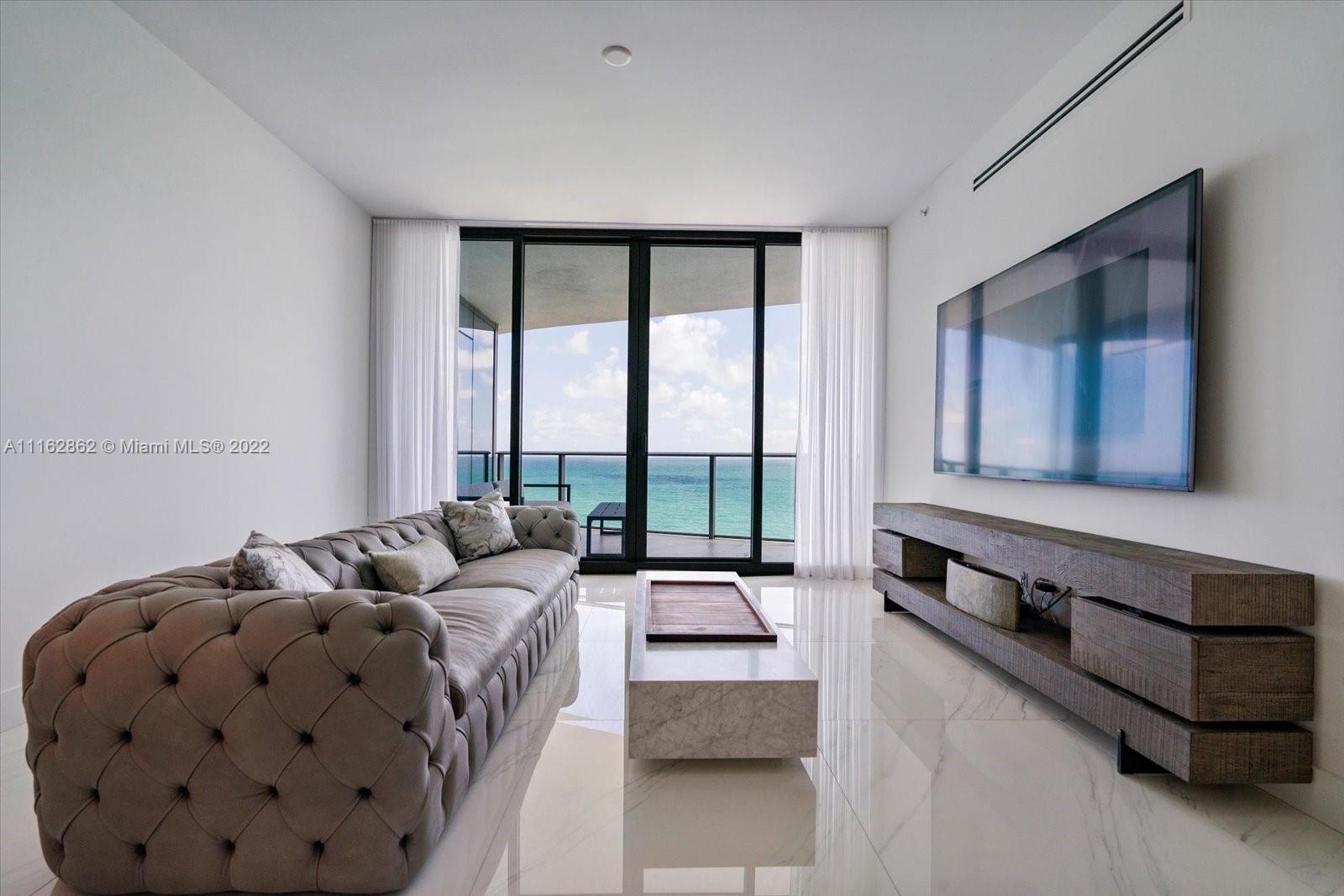 Magnificent luxurious living in the Ritz Carlton situated on 250 feet of pristine beachfront in Sunny Isles Beach. Spectacular direct ocean views in this spacious 2 bedroom, 2.5 bath home in the sky. Upon entering the residence through a private elevator you will see the top of line Gaggenau appliances, Snaidero cabinetry, cappuccino maker, wine cooler, porcelain floors, 10' ceilings, motorized blinds, and custom Onare closets, and endless ocean and city views. Managed by The Ritz-Carlton the service and Amenities are unparalleled. Including but not limited to complimentary breakfast, 10% off Ritz Carlton Hotels and Yachts, sky lounge exclusively, beach butler, 2 pools, spa, fitness center, guest suites, restaurants, and more. Great Rental Opportunity. RH Furniture available for sale.