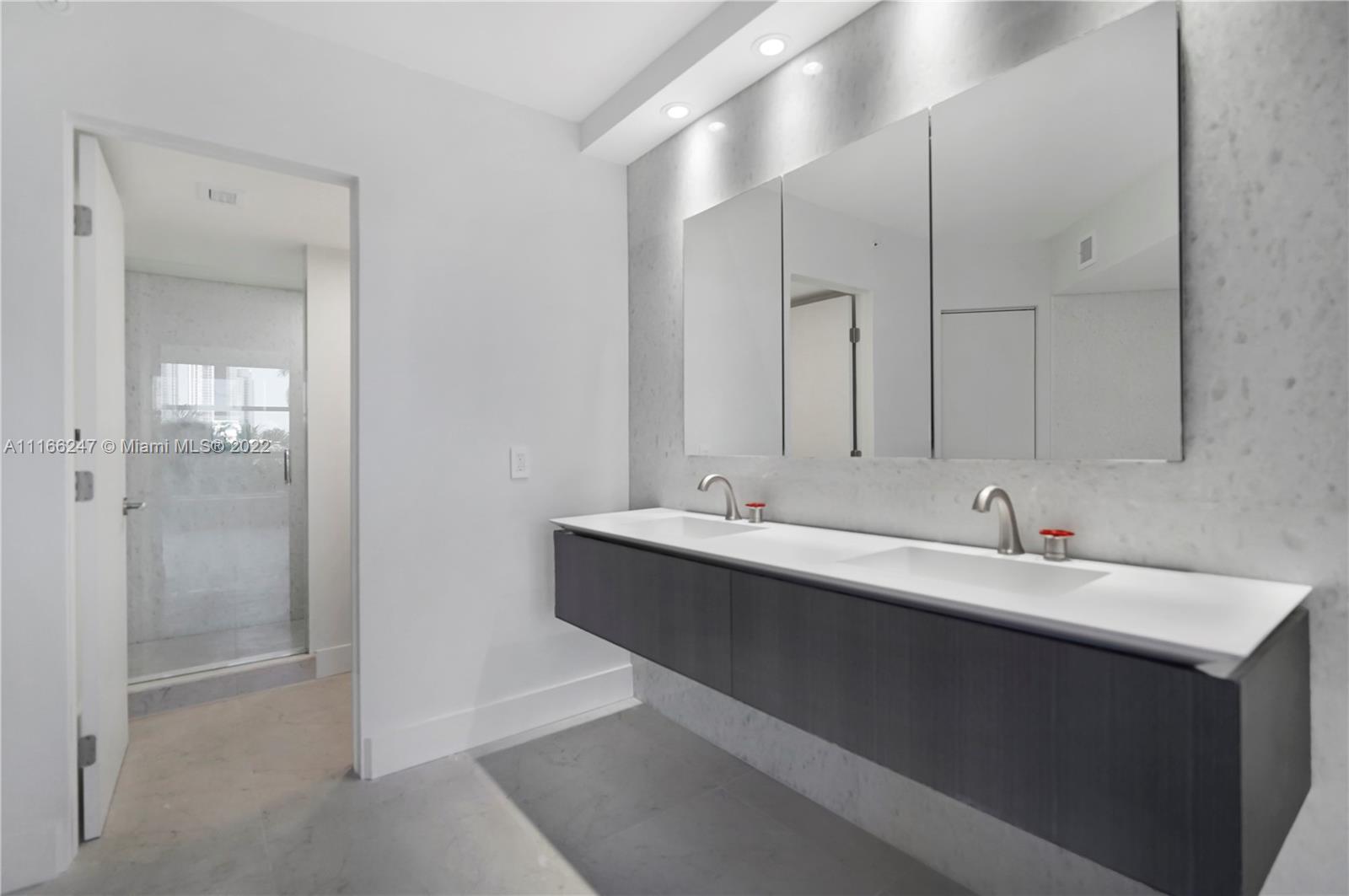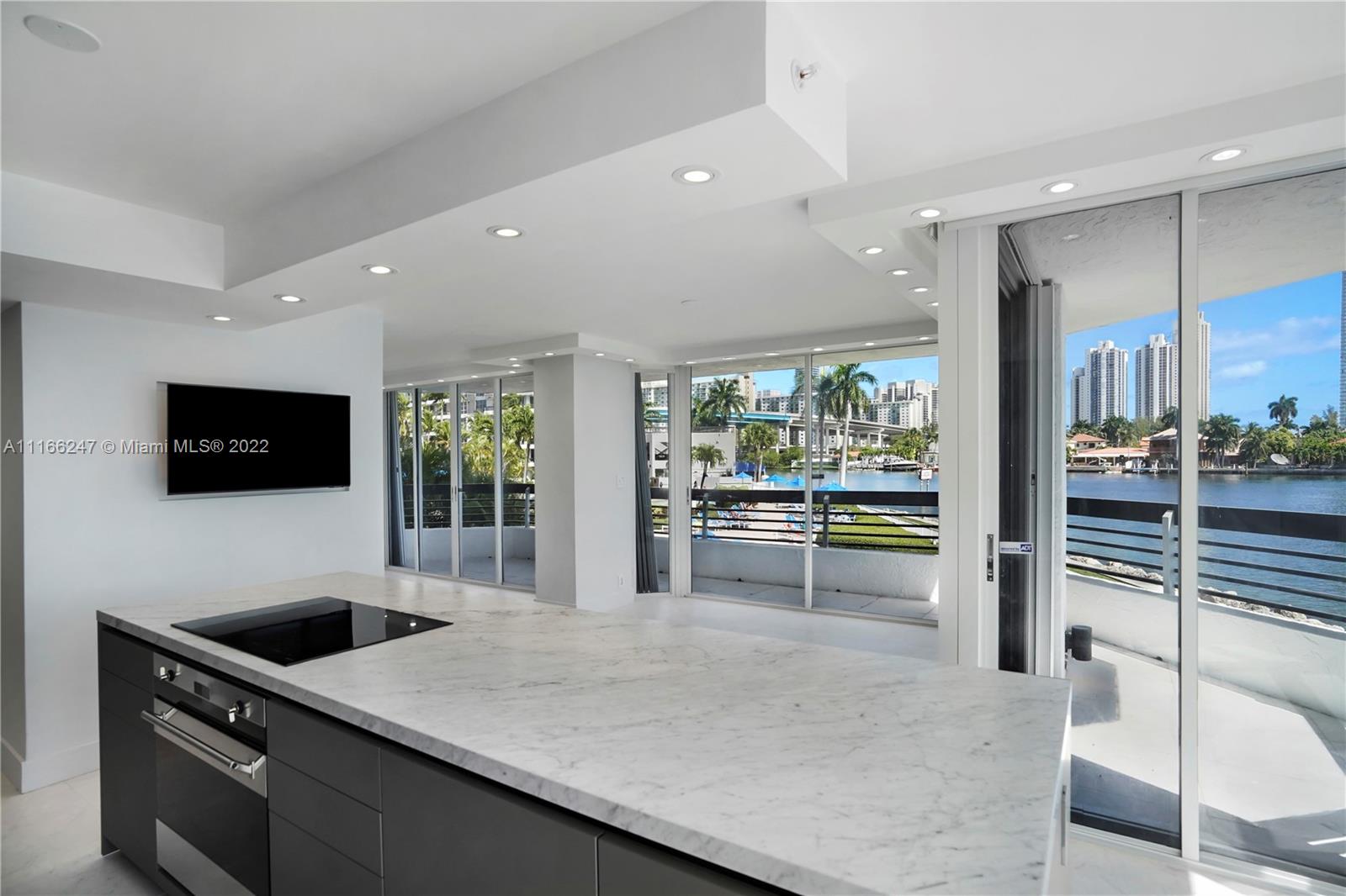 NEVER LIVED IN DESIGNER renovated end unit in Mystic Pointe. All finishes are top of the line with no expense spared. All finishes are European, including soft close Boffi cabinets, Smega oven and stove top, porcelain floors, bathroom fixtures and hardware. Unit comes with electric blinds, open concept kitchen, TV's in every room, New A/C, New water heater. Unit is an end unit with 180 degree views to open bay waters. This is truly Florida Living. Enjoy your morning coffee in the full eastern Sunrise and your evening wine in the South facing evening twilight. Unit is walking distance to houses of worship, Aventura Mall, The Don Soffer Walking Trails. Complex contains convenience shops, tennis courts, marina (independently operated).
