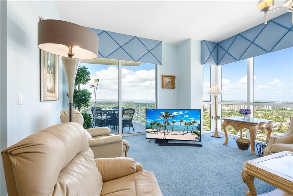 Sub-Penthouse with Spectacular Panoramic Views of City, Intracoastal & Ocean from this NW Corner. Stylish Curved Balcony has Glass Panels for Optimal Viewing. This Sub-Penthouse has 10' Ceilings and Floor-to-Ceiling Impact Windows. Full 3 Bedrooms & 2 Full Baths plus Laundry Room. L'Ambiance is a Boutique Condo with only 124 Residences & is the NEWEST condo on the Galt Mile. L'Ambiance Offers 24 Hr Security, Valet for Guests (Optional for Owners) Owners may Self park, Electric Car? No Problem, EV Electric Vehicle Charging. Fiber Optic Internet, DirecTv, Wine Rm, Giant Pool Deck with Large Pool, Spa Tub, Fantastic BBQ Area with Bar, Cabanas on the Beach, Large Updated Gym, Sauna, Steam, Party Room w/ Full Kitchen. Close to Restaurants. 2 Pets OK 40lbs.