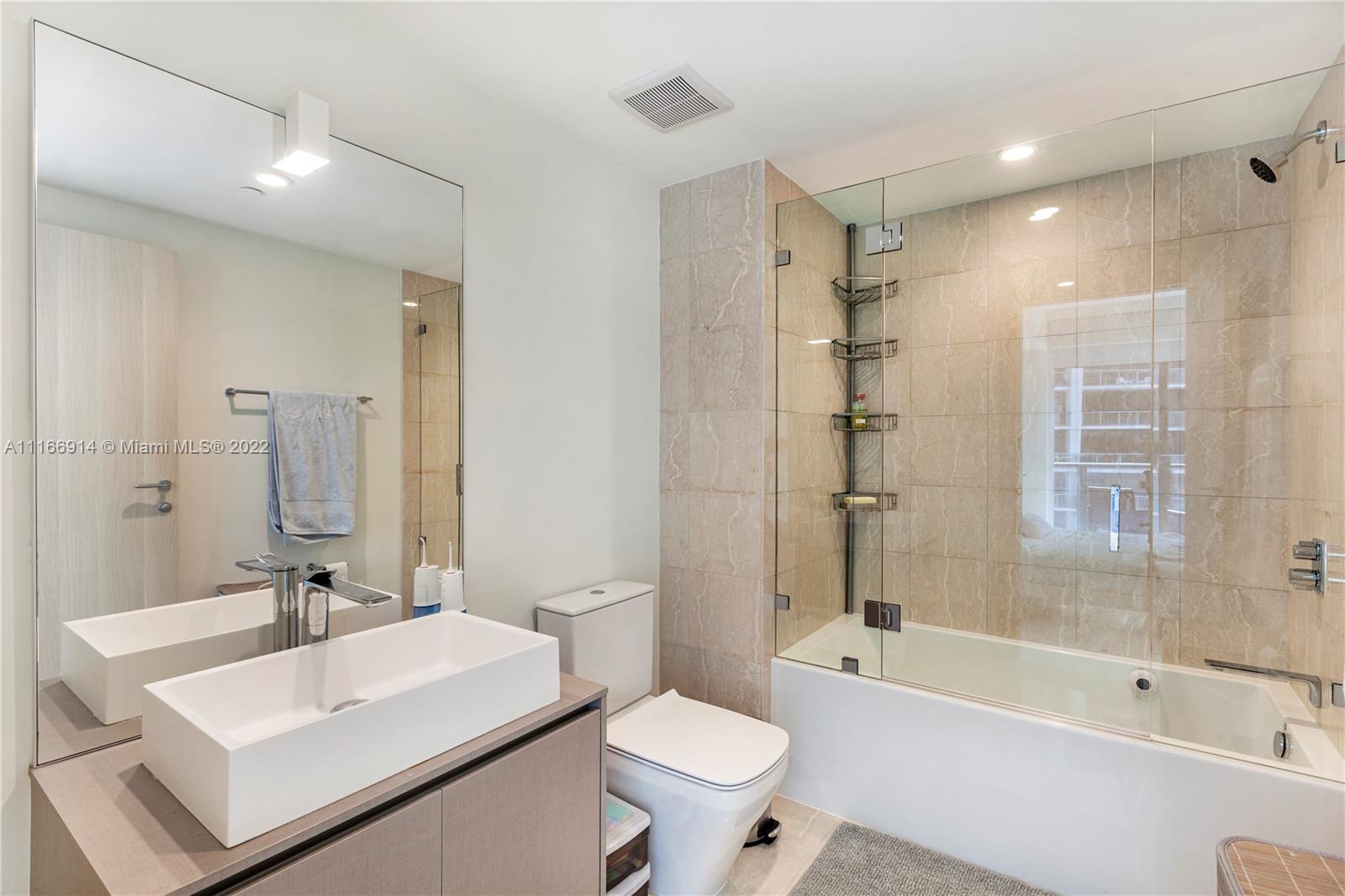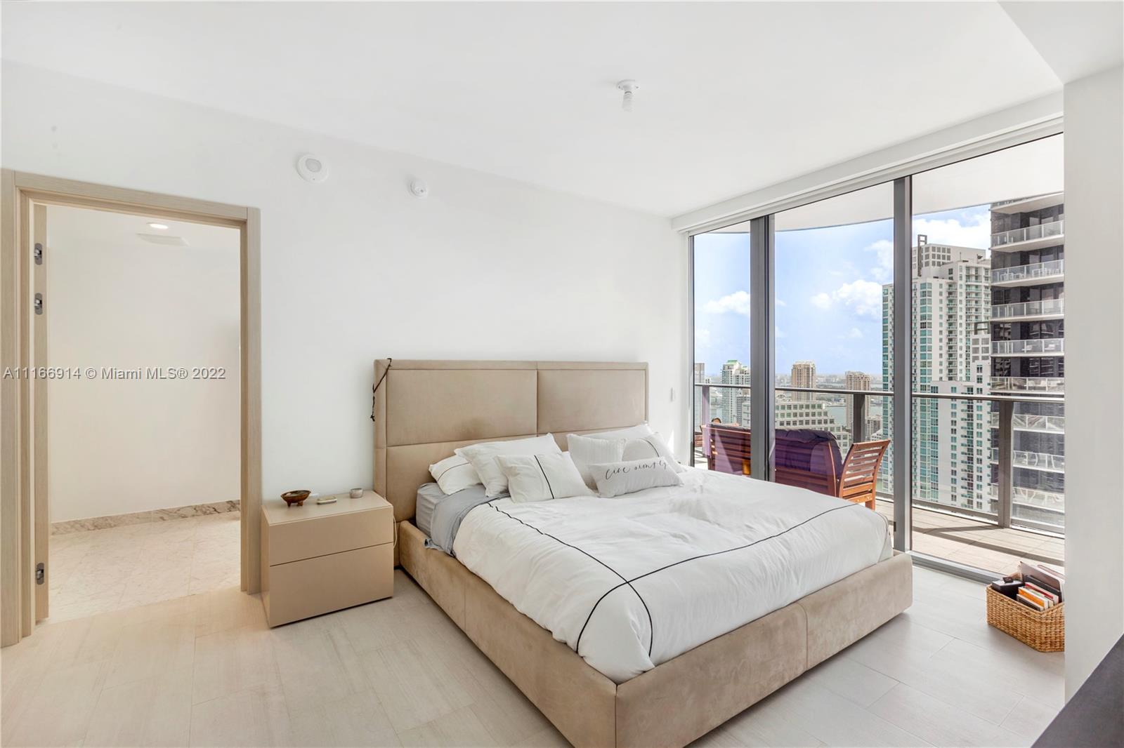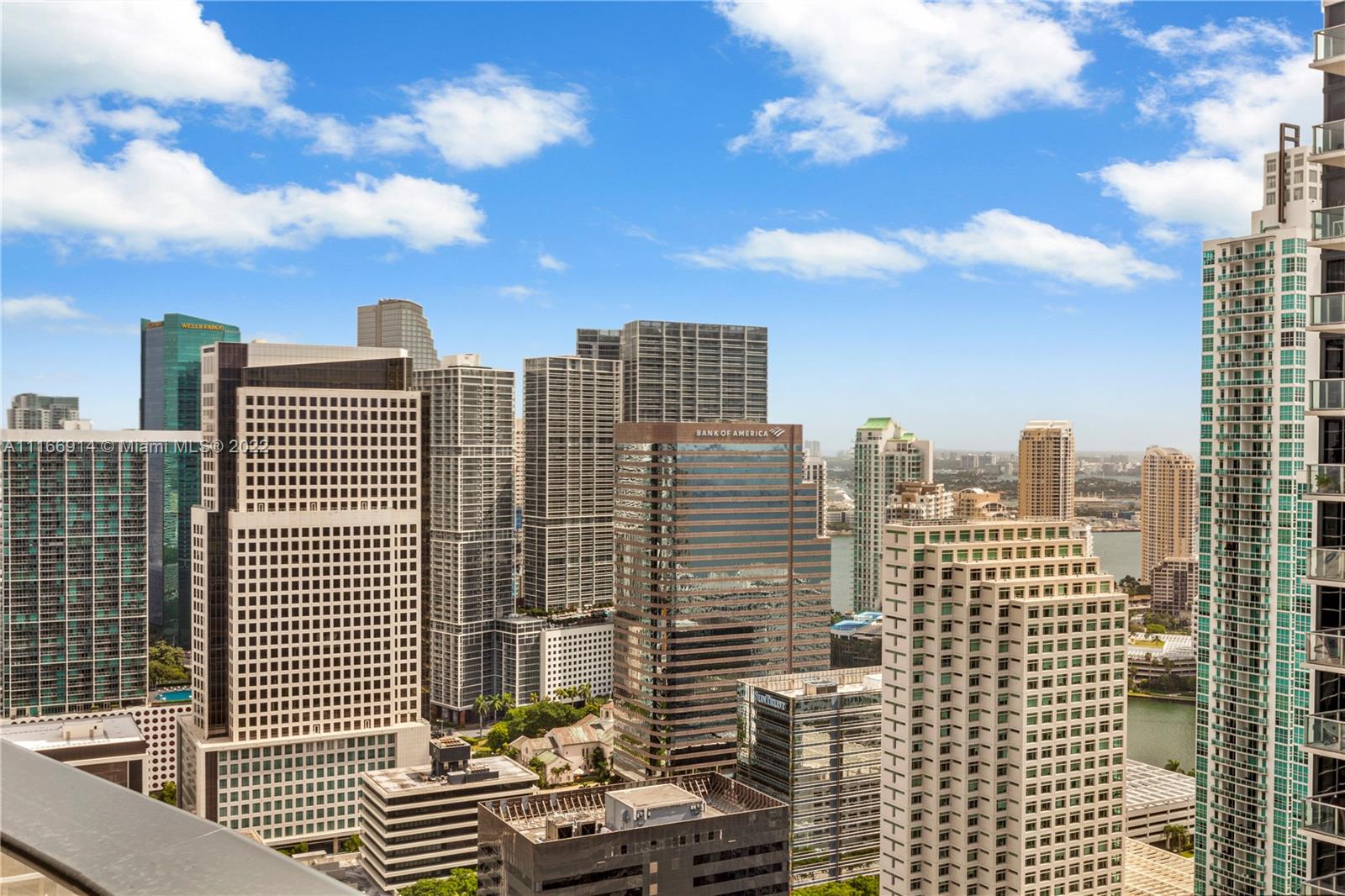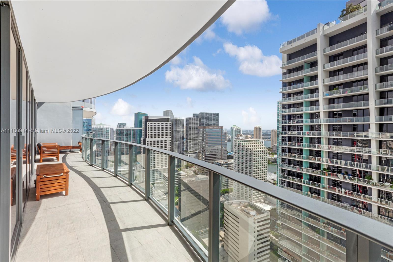 Magnificent skyline views complete this modern condo in the unique architectural icon developed by Ugo Colombo. With 1,236 Sq.Ft., its glass walls and elliptical balconies wrap around the 2 bedrooms and 2.5 bathrooms, kitchen, and living/dining room area. The imported Italian marble floors, accent walls, custom-designed cabinetry, and high-end, stainless steel appliances create a sophisticated style for easy living. This unit has a spacious washer and dryer walk in closet, smart master Toilet ,remote control blinds and 2 parking spaces.The amenities include a spa, gym, 2 pools, theater, lounge, billiards room, personal concierge, children's pool, and playroom, plus a secure parking garage with electric vehicle charging stations. Walking distace to all Brickell has to offer.
