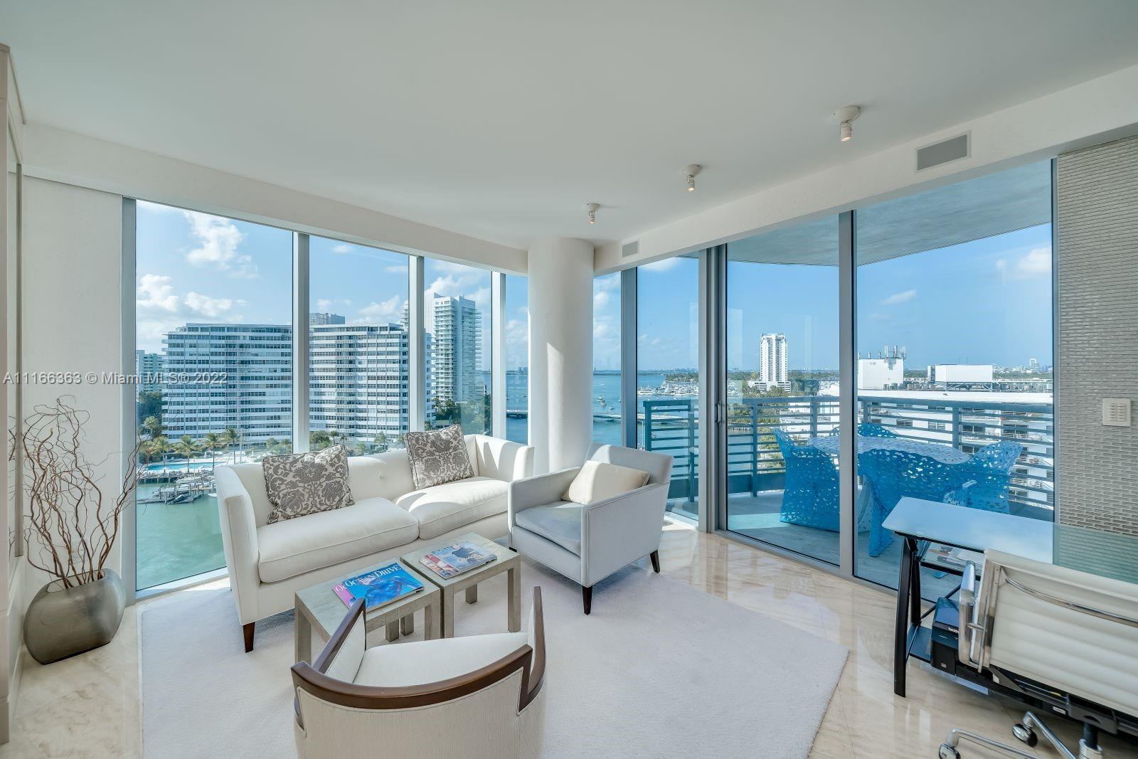 Corner unit with extraordinary Bay & City views plus amazing sunsets! Live the endless summer. Perfectly located 55-unit boutique building. Fitness center, bayfront pool, Jacuzzi, valet, & security. All top-quality finishes. Every room has extravagant views. Chefs will swoon over the open kitchen with Wolf appliances and Sub-Zero wine fridge. Dine alfresco on the covered terraces and revel in the sunset. Close to SoBe's best restaurants, gyms, & shops. Minutes to the ocean & the international airport. Can be purchased and combined with #1102 for a total 2,970 sq ft. Rare assigned private parking space. Pet-friendly building. Miami has become the most important city in America. This is your piece of paradise.