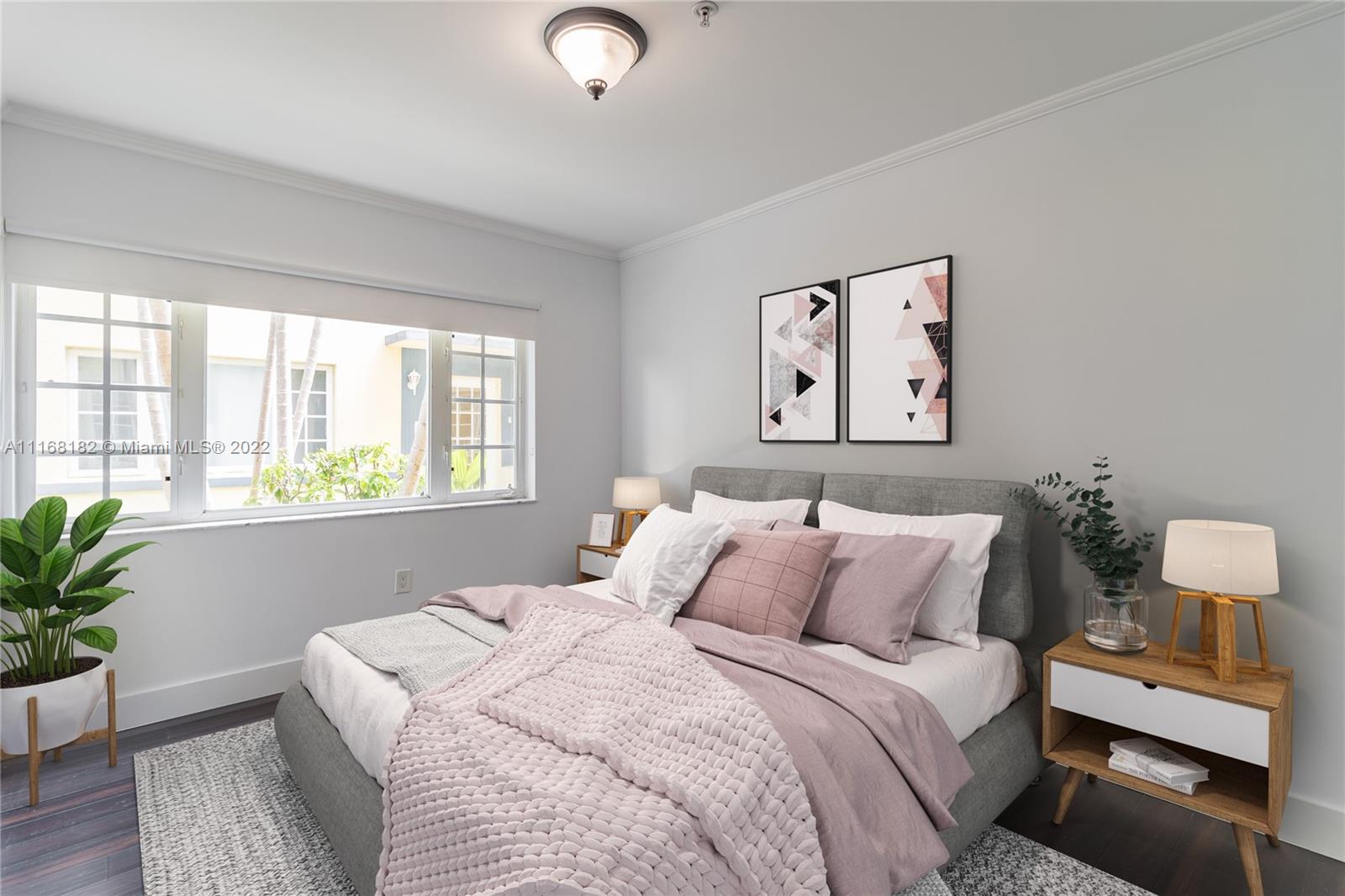 Beautiful renovated Deco home with two bedrooms, two full baths, washer and dryer, dishwasher, separate dining area and lots of windows and light. Quiet, well maintained complex in the heart of South Beach just steps from the ocean, shopping, south-of-fifth and the causeway to all major highways. Large pets welcome!