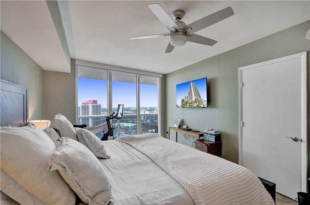 Beautiful Intercoastal and city views from the 31st floor. This one bedroom plus den enclosed with french doors, can be used as second bedroom/office. Master bedroom has electronic black out shades. 2020 SS refrigerator with food showcase window, 2020 oven, microwave & dishwasher. A/C 2016. Full size W/D. Full concierge Beach Club Condo, 5 star amenity building featuring ocean facing full service fitness center, his and hers sauna and full service SPA. Complimentary spinning, yoga and more. Access to all three towers, pools and pool side cafe/bar over looking the ocean with complimentary beach service. 2 parking spaces, 1self park and 1 valet.