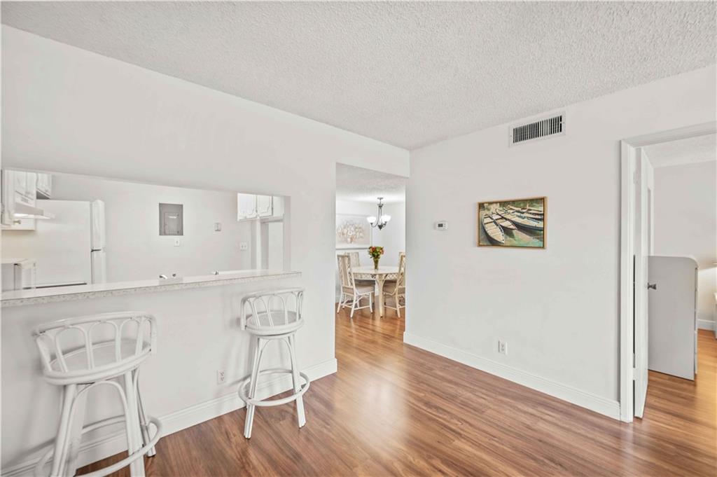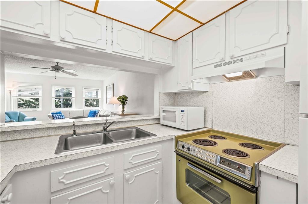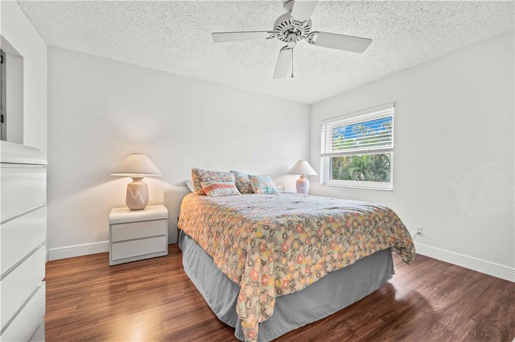 The perfect location and situated in a well managed boutique residence. Spacious 1- bedroom, 1 bath second floor west-facing unit park-side in Victoria Park. New laminate flooring, impact windows, a Kitchen with Breakfast Bar pass thru, generous amount of closet space plus a storage unit too. Kitchen and bath or mint 70's design and in very good condition. Assigned owner parking, tons of guest parking plus a community laundry and heated pool. Rentals permitted but pets are not allowed. Only steps to Holiday Park's tennis center and all the park has to offer. Building has passed 40 year inspections. Roof about 10 years old. No assessments are scheduled. See broker's remarks.