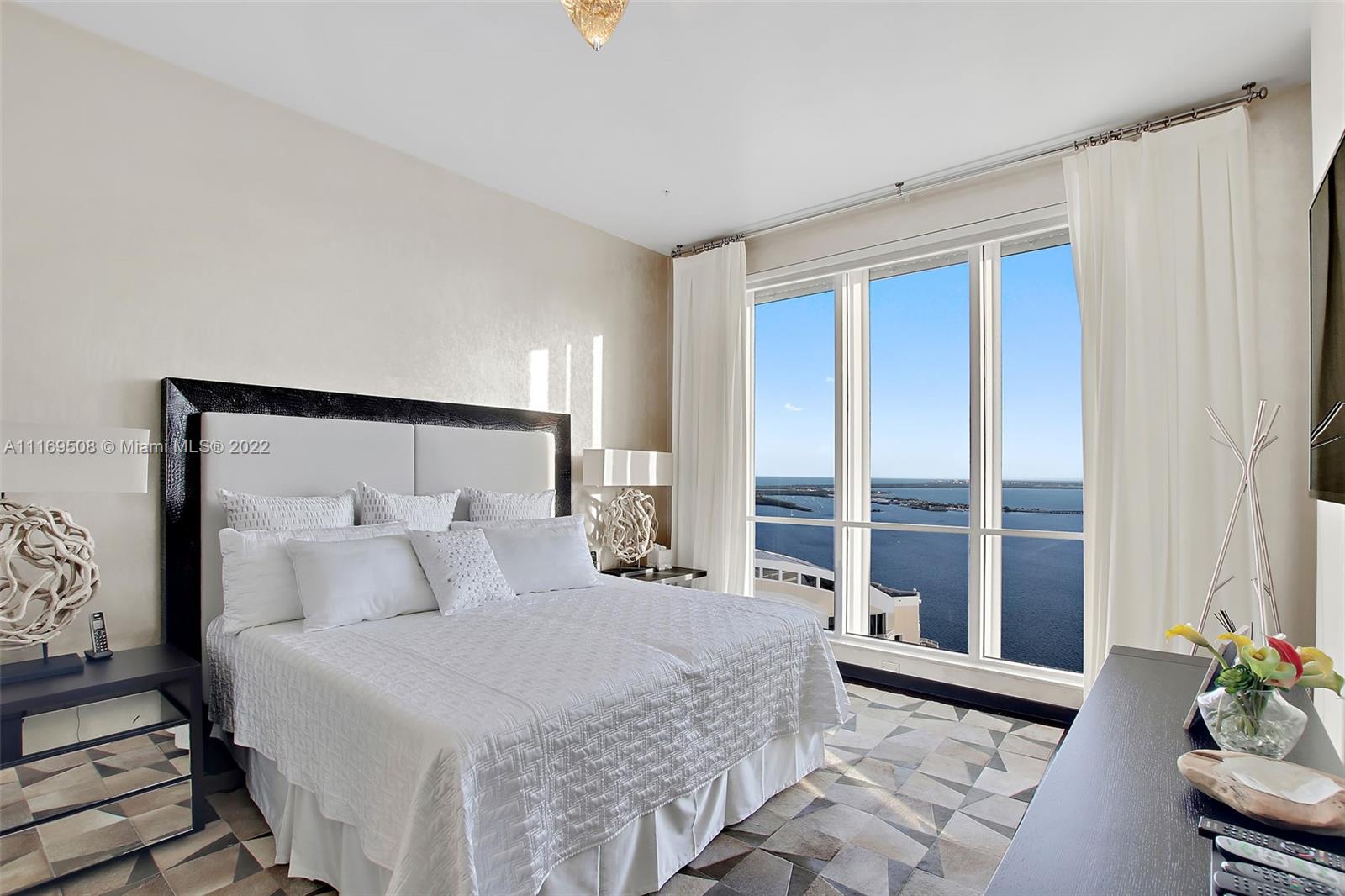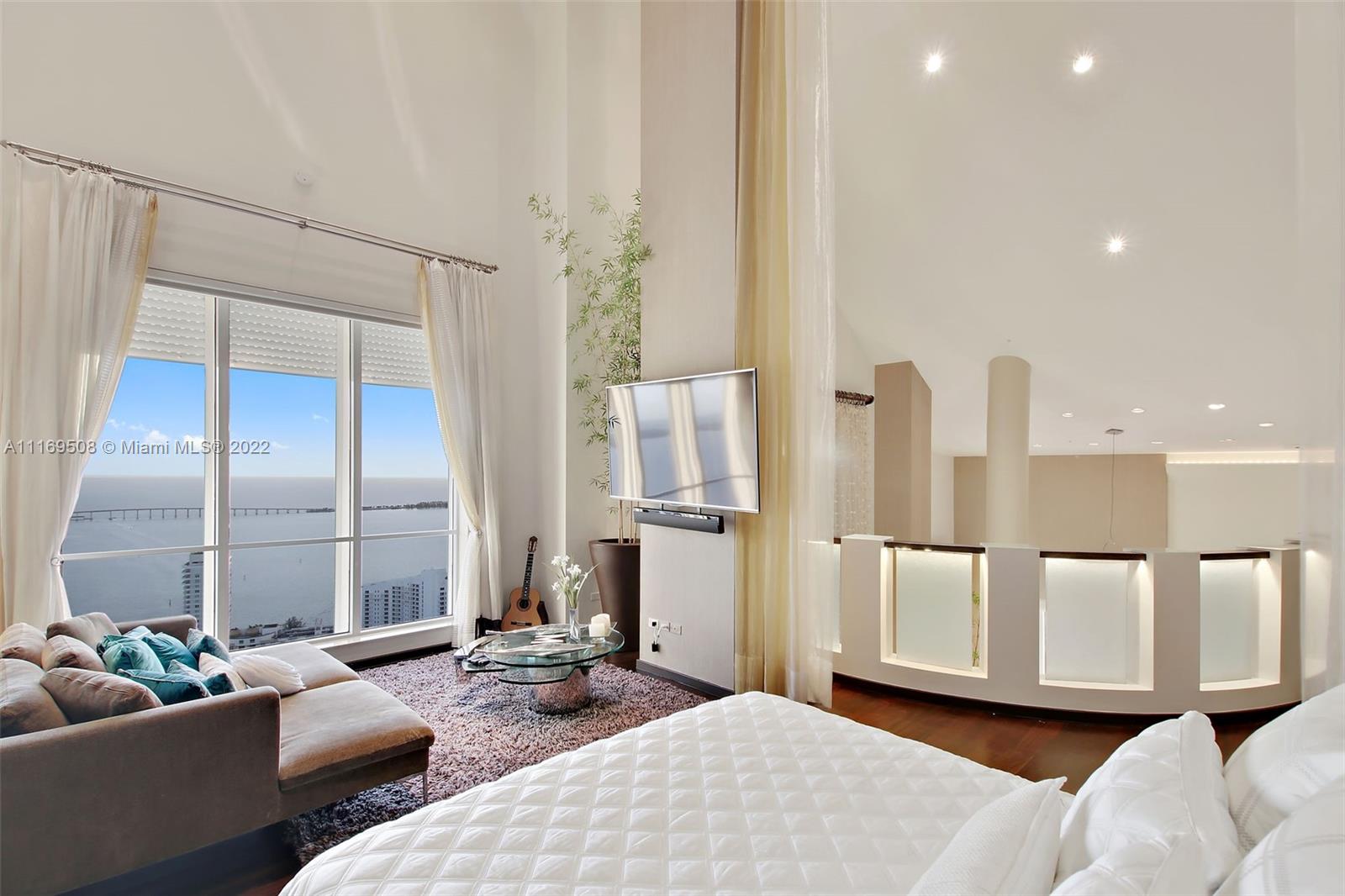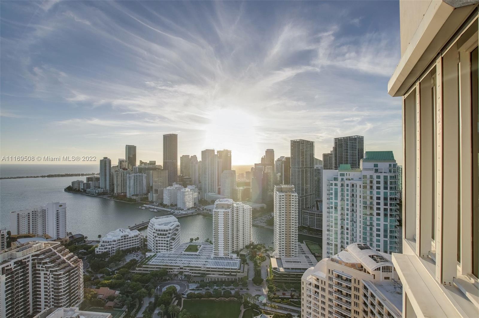 One of a kind offering. Absolutely the best on Brickell Key! This Penthouse is all about breathtaking, unobstructed water and skyline views, stunningly high 40ft ceilings. This unique property features 3 beds/3.5 baths plus office. All wood floors in bedrooms, marble in baths/kitchen. Closed private garage within the parking area with room for more than two cars, extra storage. A true gem! Among the building's amenities you will find pool, 2 level fitness center, BBQ area, tennis court & racquetball court, valet, concierge & much more. Best location within the sought after island of Brickell Key, minutes to the best shopping, dining Miami has to offer while in the quiet Brickell Key