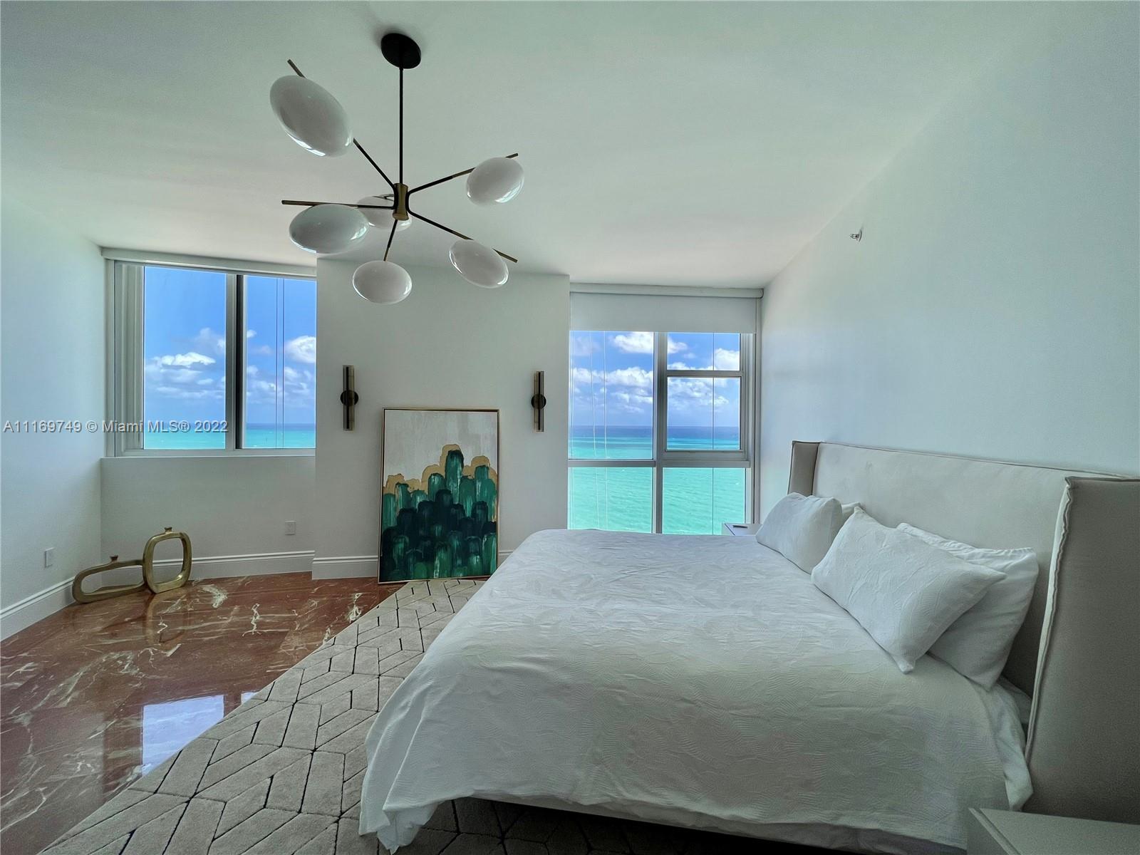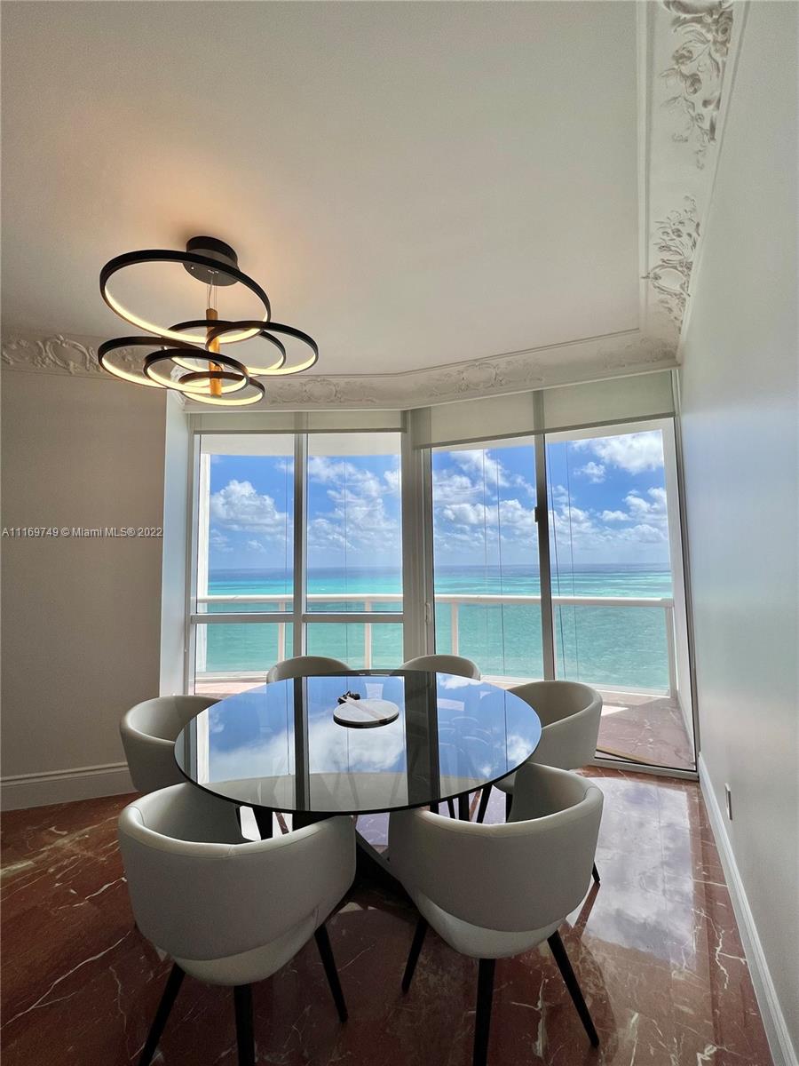 Immaculate oceanfront residence with luxurious upgrades that exudes class at Trump Royale. This unit features the largest two-bedroom floor plan in the building with a total of 1,722 SQFT. Featuring 10ft ceiling with crown moldings, exquisite Turkish Rosso levanto marble floors throughout, brand-new high-end furniture, all custom marble bathrooms, onyx sauna shower, gold platted faucets and electronic TOTO NeoReat system. The bright with stunning ocean views custom marble Italian kitchen features two subzero refrigerators, all upgraded Miele appliances with two stoves and two sinks. Miele washer and dryer. Custom Italian solid wood doors and frames, closets, electronic shade system. This is truly your gem in the ocean.Equal Housing Opportunity