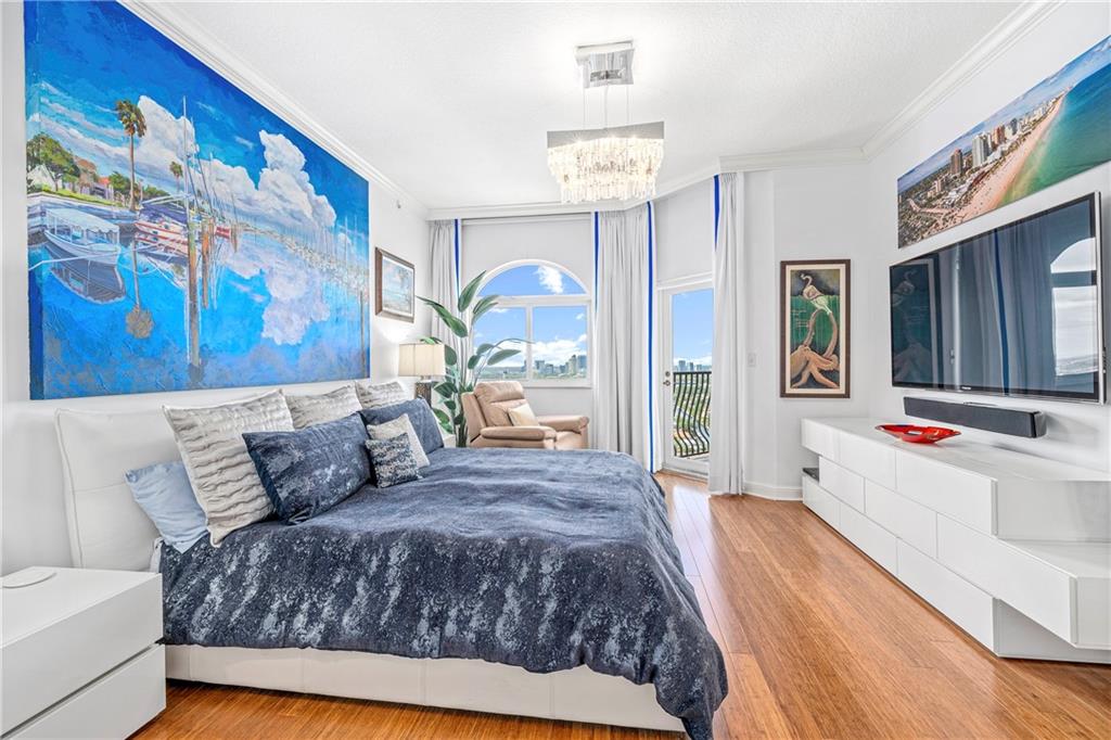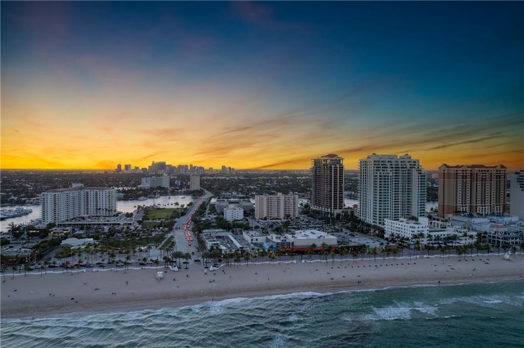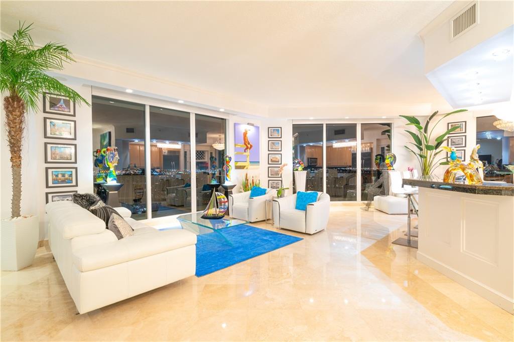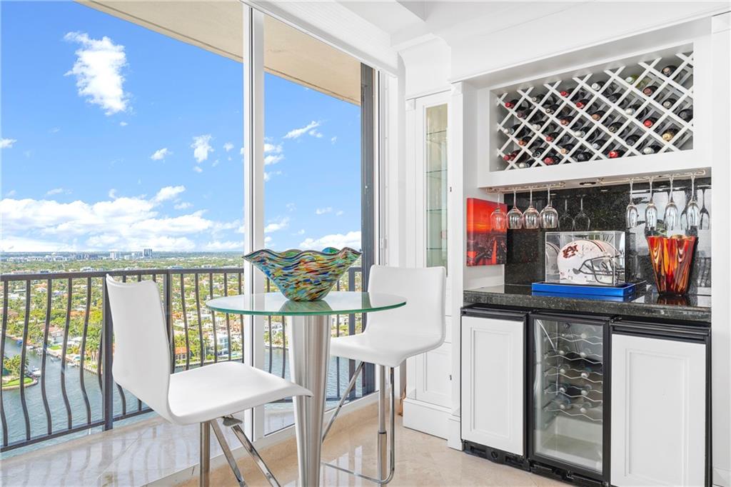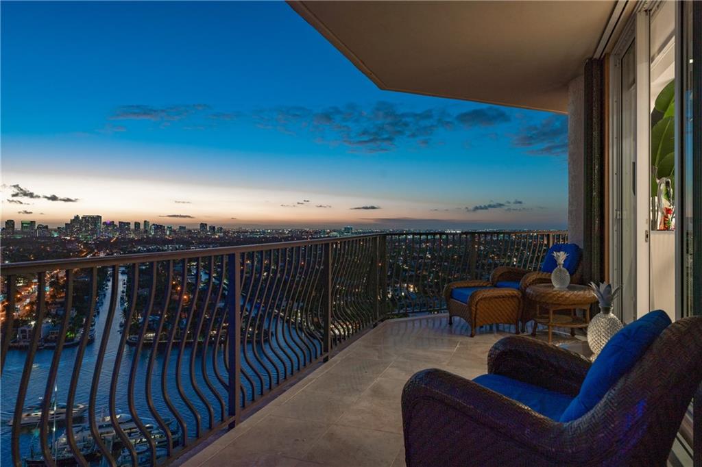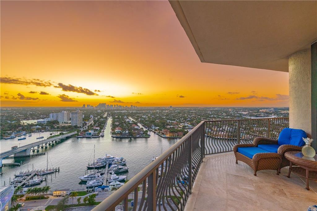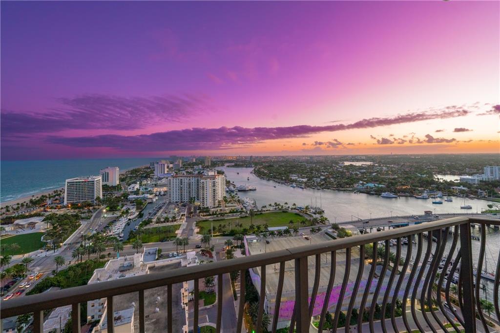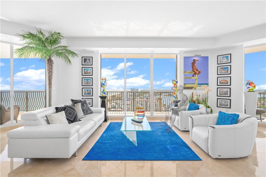 Breathtaking open views in every direction from this highly sought-after SW corner unit, offering sweeping panoramas of the ocean, Intracoastal, and city skyline - with an unbeatable location overlooking the Las Olas Marina and beach and panoramic views of the yachting capital of the world. Private elevator delivers you to an entry foyer and into this meticulously maintained lower penthouse originally designed by the renowned Steven G. The light-filled residence spanning 2,000 square-feet features marble and bamboo flooring throughout and high ceilings with beautiful crystal and blown glass chandeliers. A custom open kitchen showcases granite countertops, updated appliances, and a breakfast bar, plus a built-in bar area with a wine rack and cooler perfect for entertaining.