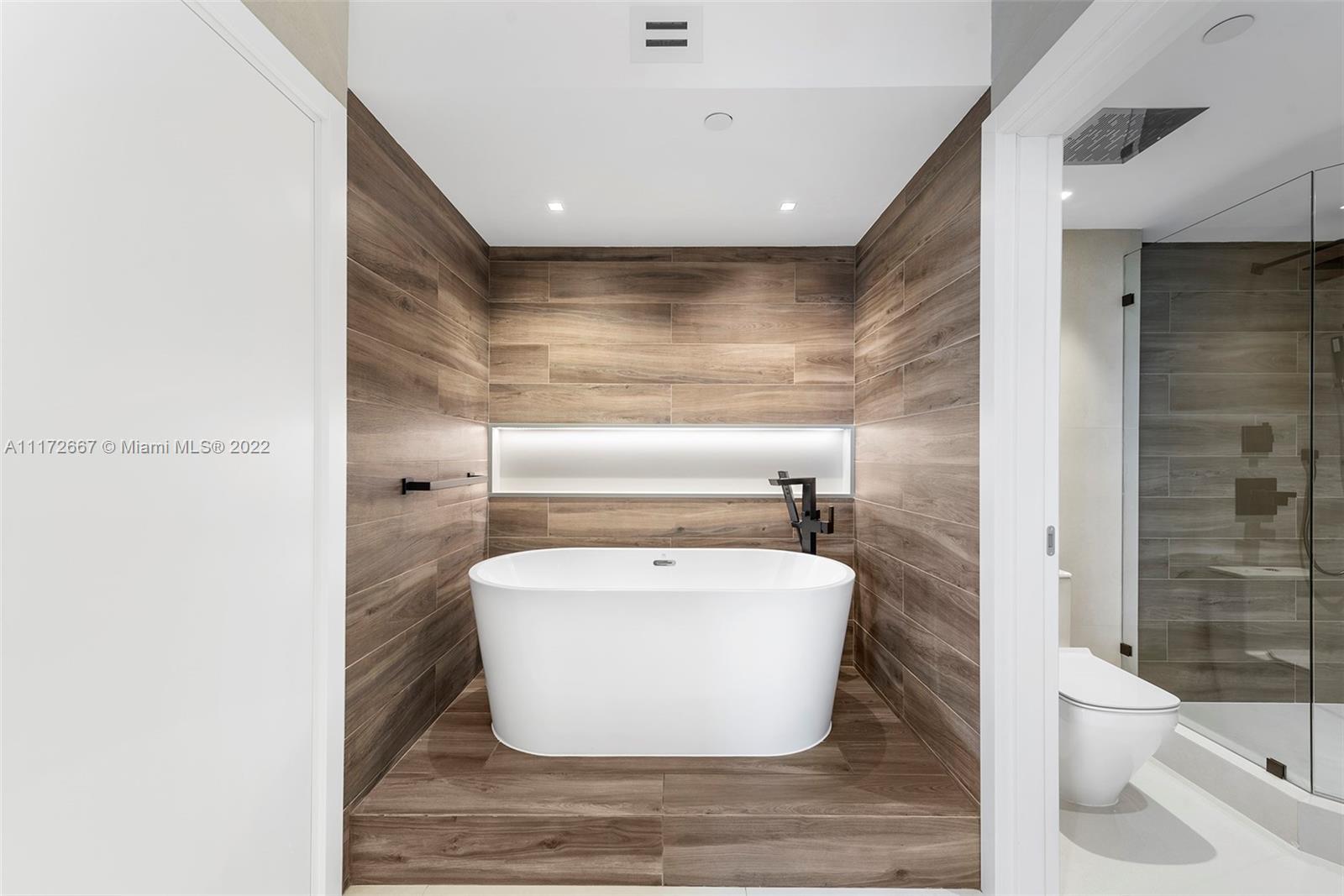 Stunning Hidden Bay “08” line apartment professionally designed/completed by 2id Interiors. Contemporary-style with high-end finishes. Fully automated lighting & motorized blinds throughout. Master suite w/bathtub, double vanity, and walk-in shower. The “08” line is the best line in the building w/total privacy & stunning SE views of the Intracoastal, Atlantic Ocean, & Skyline. Includes 2 parking spaces & storage unit.