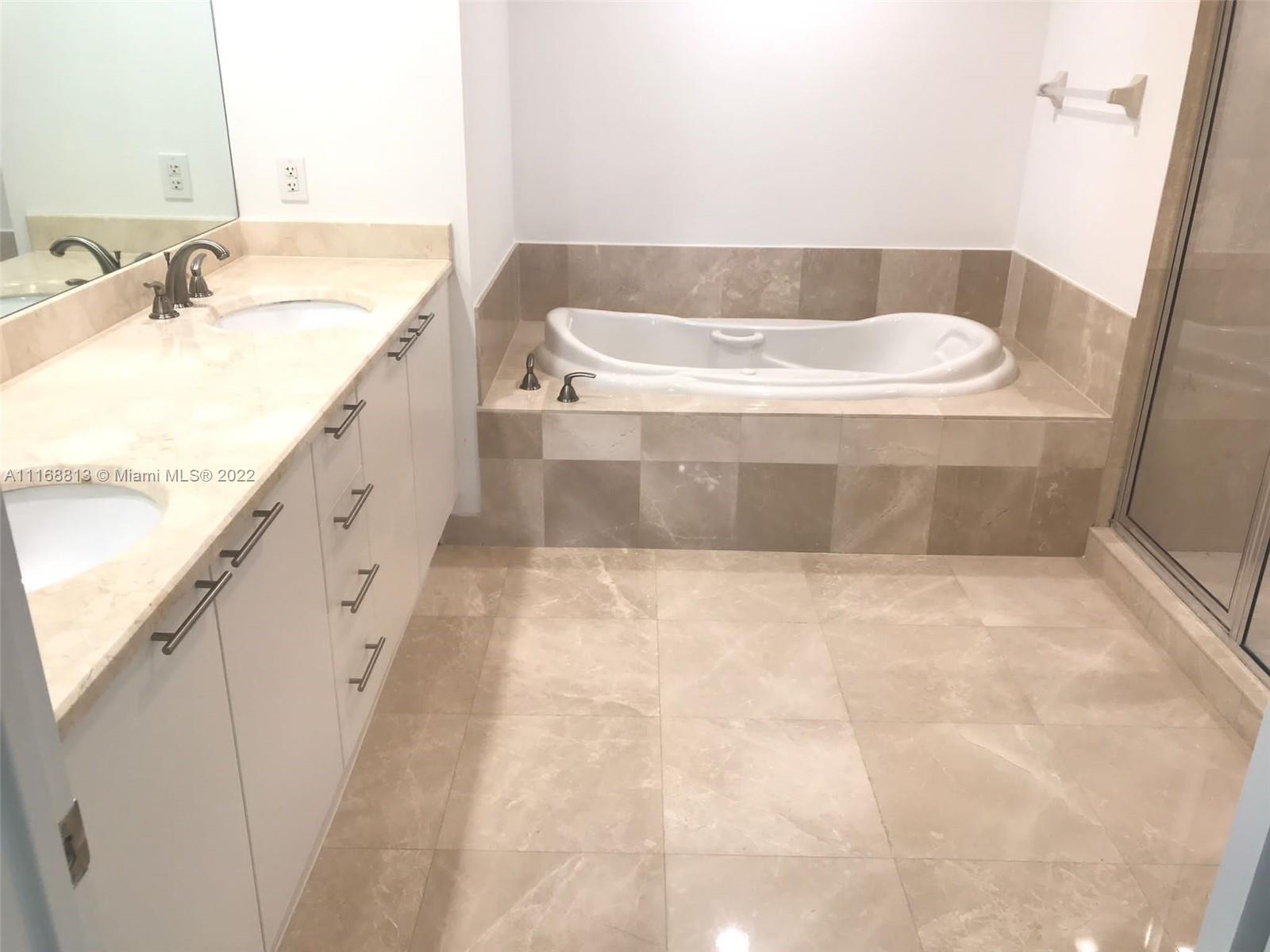 Large Corner unit lots of light with 3 bedrooms, 3 full baths. Master and 2nd w/its own bathroom, . Large Master with walking closet Marble Bath with Bath and shower, 2 sinks, Balcony overlooks the Preserve, Open Kitchen to Living Dining with Lots of light high ceilings, Italian style with Stainless Steel Appliances. Impact windows All hard floors Marble in the living area, new flooring on 2 bedrooms, 3th marble. Recently painted, new floors in bedrooms, move in condition. Secure building gated with Guard gate, elevator only goes to your floor via fab. Great amenities: Pool, Clubhouse, Tennis Court, Tot Lot, State of the art Gym. Building in front of Costco. Assessment $345.97 assumable as per the association, the majority of the assessment is the purchase of the land by the owners