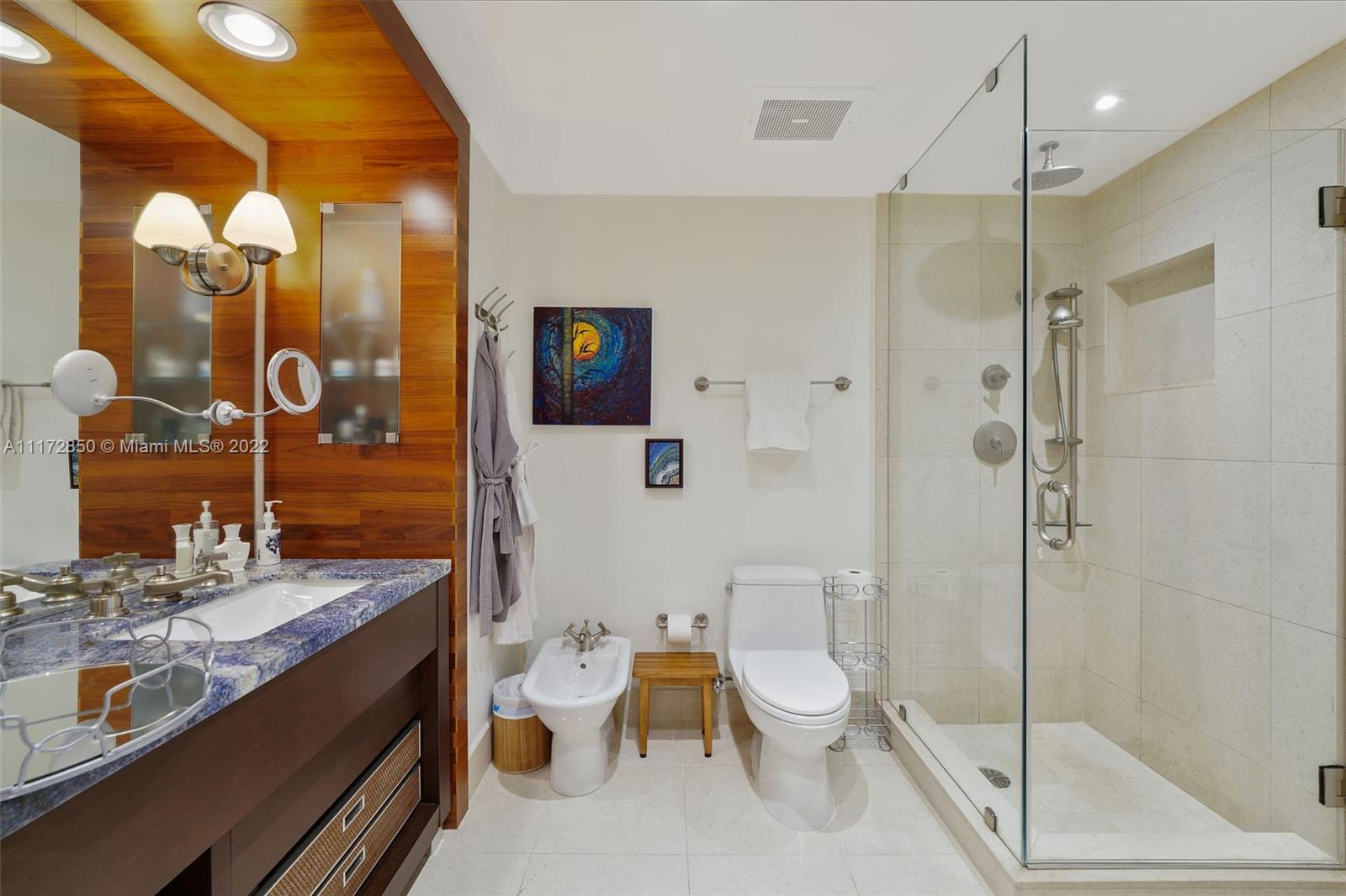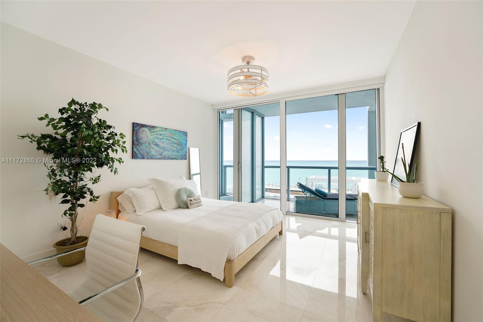 Rare opportunity! Listen to waves from your exquisite newly-renovated direct oceanfront residence at The Carillon Miami Wellness Resort. Floor-to-ceiling glass sliders; balcony access with direct ocean views from EVERY ROOM. The impressive 230 sqft balcony offers expansive outdoor seaside living, lounging & entertaining space. This highly coveted residence features new gimbal lighting, remodeled kitchen with large Kohler working sink, Brizo faucet, Extended quartz countertops, and new high-end appliances: sleek convection oven/microwave, Miele dishwasher, Sub-Zero refrigerator & brand new Climate Master HAVC. New Somfy motorized shades in every room. Gorgeous/ newly restored marble flooring throughout unit & balcony. See this treasure soon; Available only for a limited time.