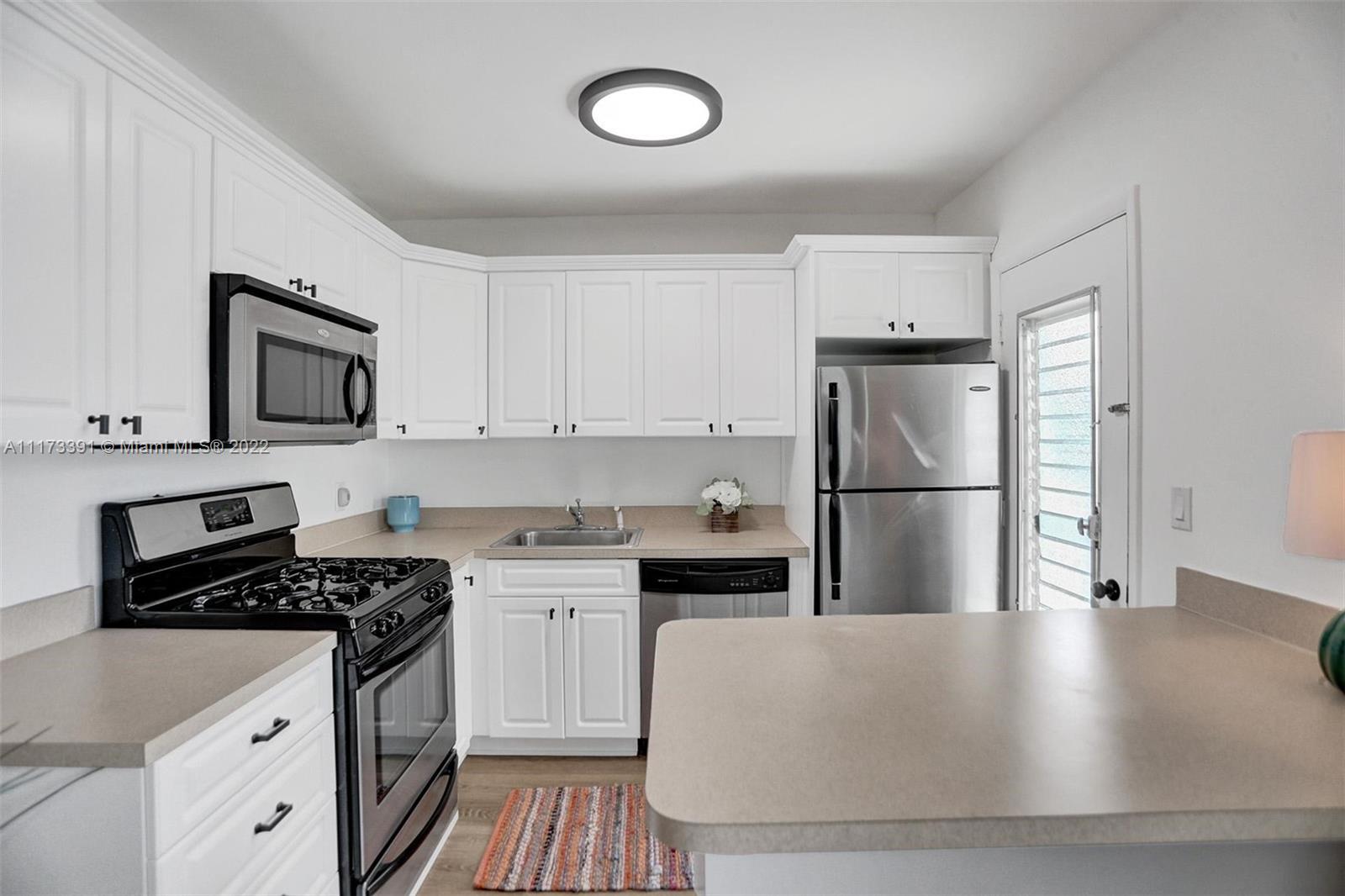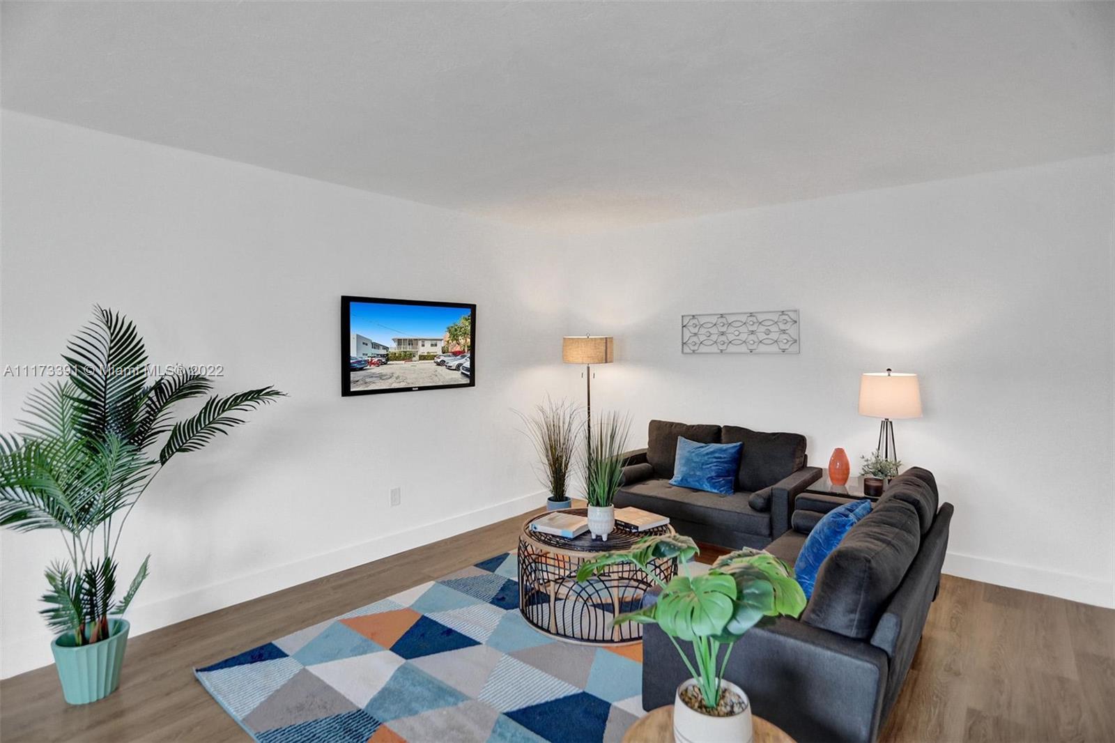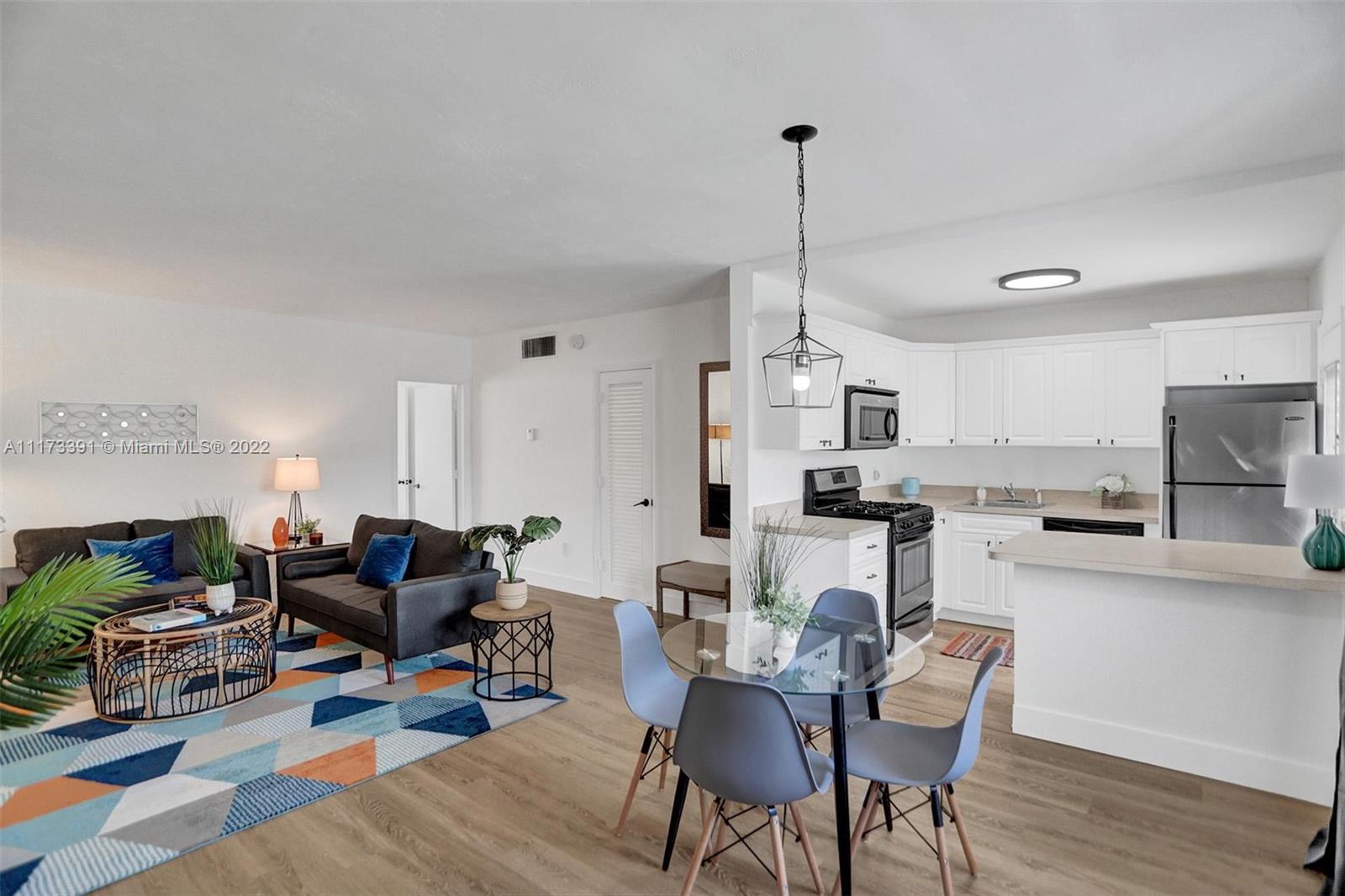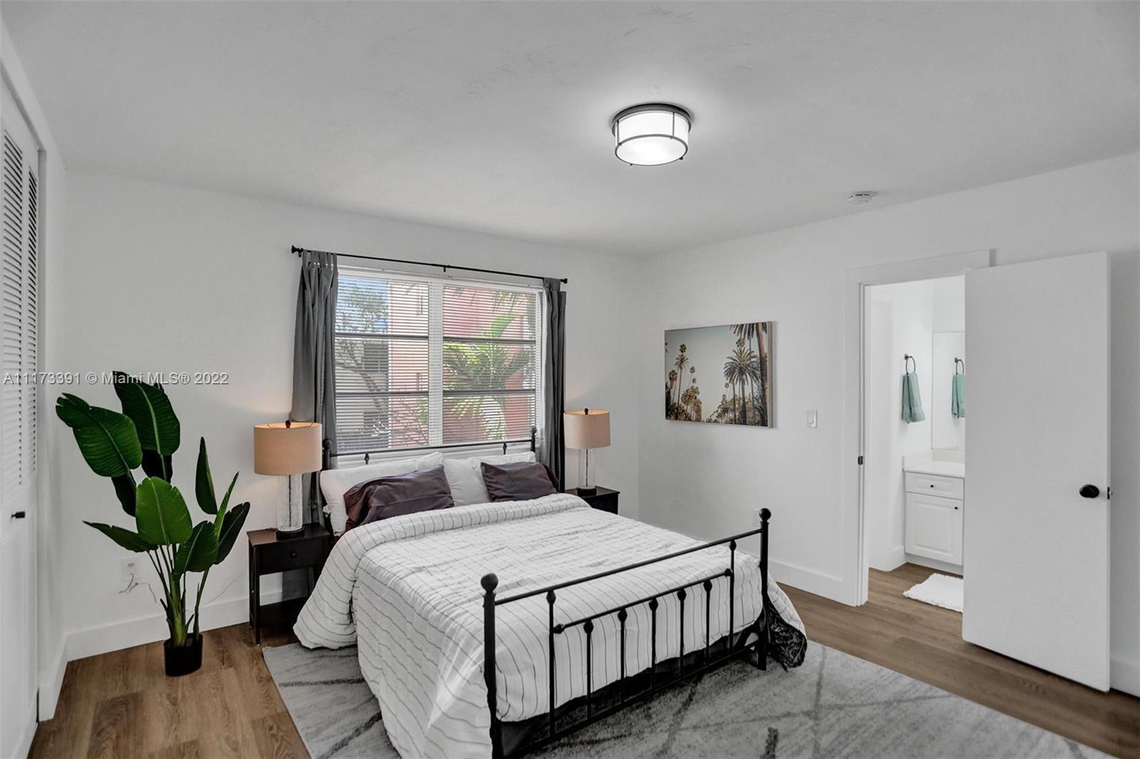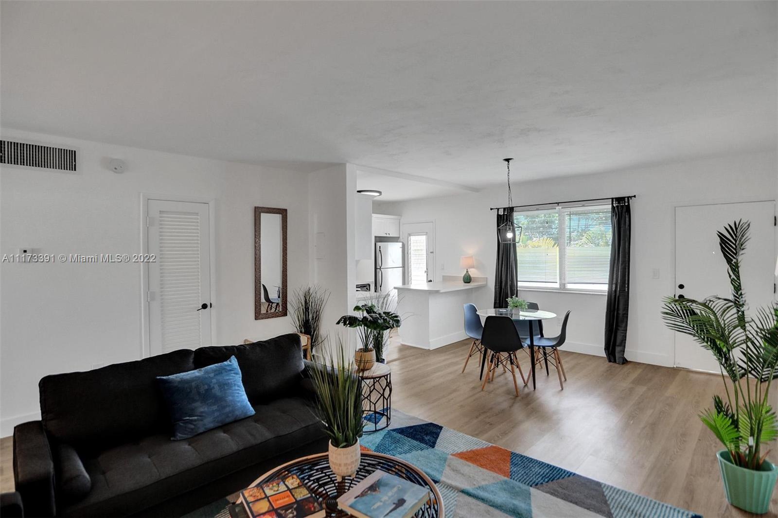 This top floor unit has almost 800 Sqft of living space. 1 large main room with entire wall of closest with en suite bathroom. Large- living-dining- kitchen area with Stainless Steele kitchen appliances. Unit has in unit washer/dryer central A/C and 1 car deeded uncovered parking space. Unit has been recently updated: Fresh paint, new vinyl wood flooring through-out. Furniture sold separately. Garden style building, walking distance to Miami Beach Convention center, Lincoln Rd and Beach. No Airbnb or Daily Rentals are allowed. Only 2 terms per year or year only allowed.
