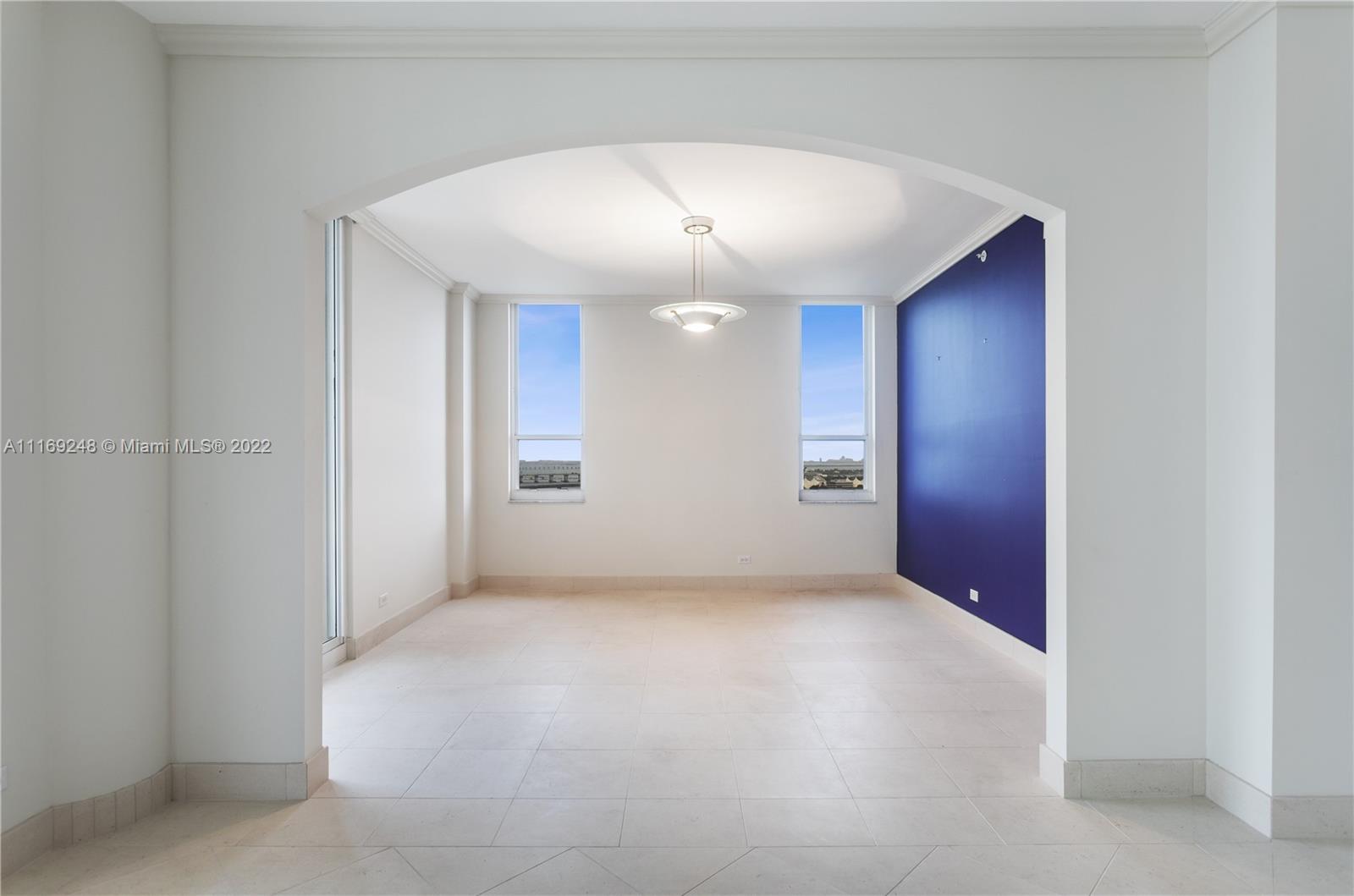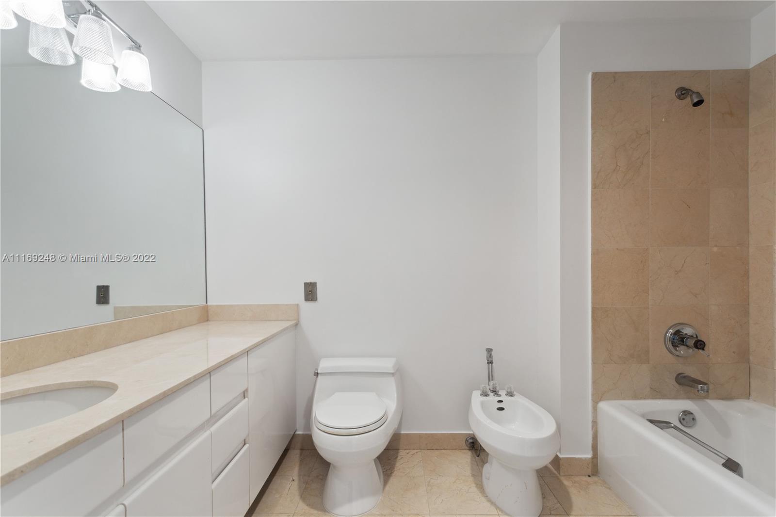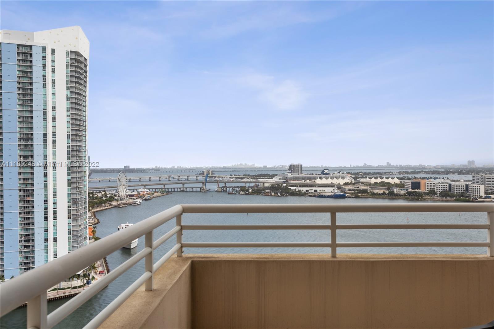 Gorgeous 3 bedrooms, 3 bathroom unit with panoramic ocean and city views! One of a kind ! One Tequesta point. Split floor plan. Spacious living and dining area. International artist designed custom mosaic entry. Great size eat in kitchen with balcony. Three en-suite bedrooms with walk in closets. Two bedrooms with access to balconies. Owner has converted unit to 2 bedrooms and an office/ den but, it can be easily restored to 3 bedrooms. 2 assigned indoor parking spaces. Full service pet friendly building, including a 24-hour security, pool, spa, racquetball, fitness center, & much more. Additionally, Brickell Key offers, recreational parks, a 1 mile strolling path that surrounds the island, and high-end restaurants and local markets.