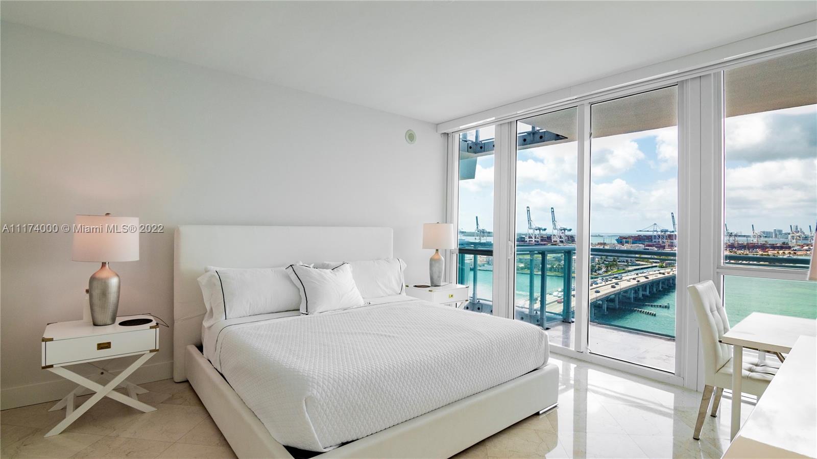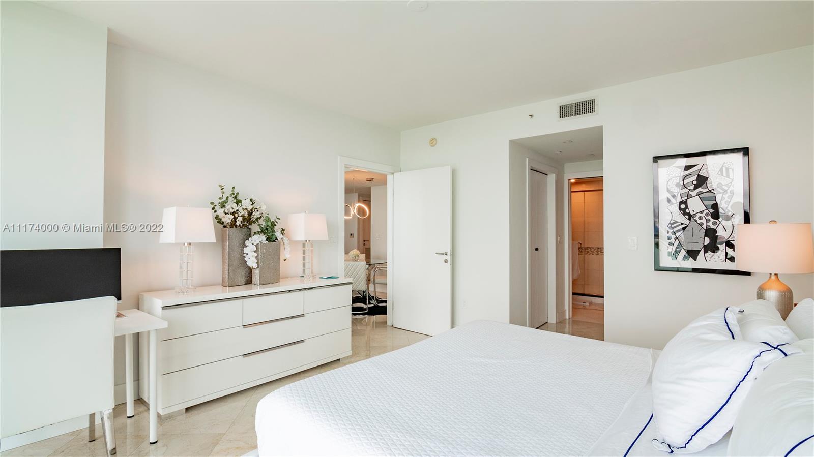 Stunning 2 bed/ 2 bath unit in Bentley Bay South Tower with direct unobstructed bay and Downtown skyline views from every room in the unit. Unit features an oversized kitchen with stainless steel appliances, blackout shades throughout, two walk in closets in the primary suite, soaking tub and 9 foot ceilings throughout. Residents appreciate 24 hour security, concierge, valet and A-class amenities including an infinity edge pool, two jacuzzies, sauna & steam room and newly renovated fitness center. Directly across from the new 3-acre West Ave Miami Beach Park.