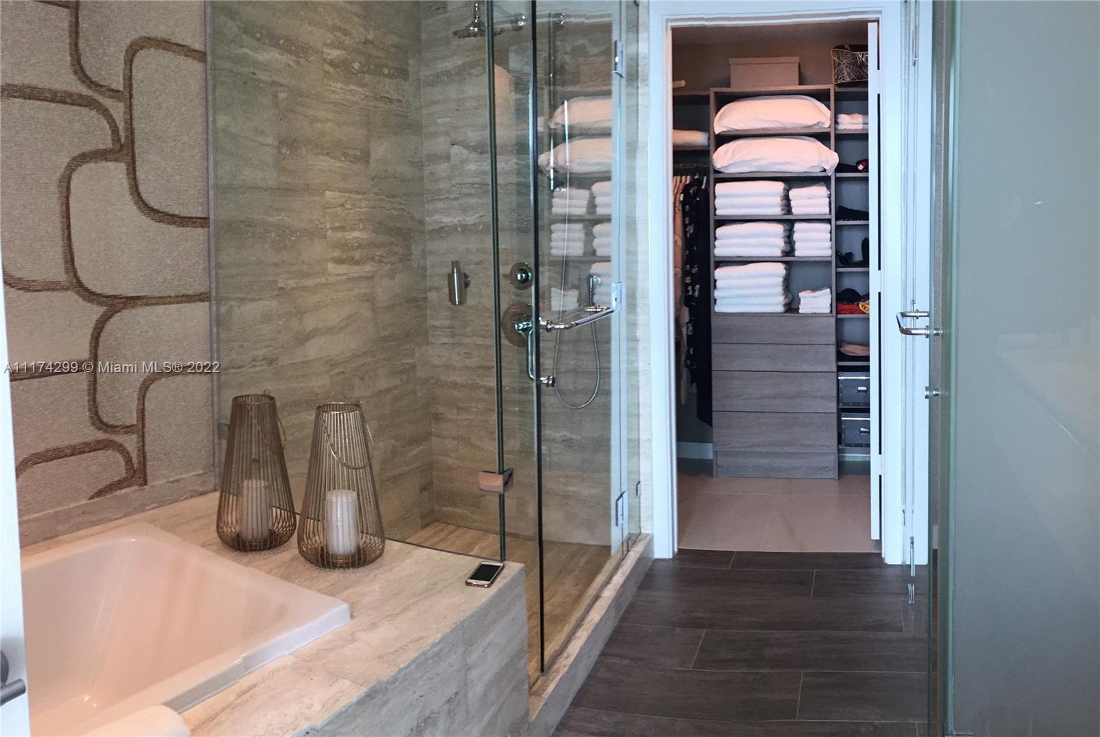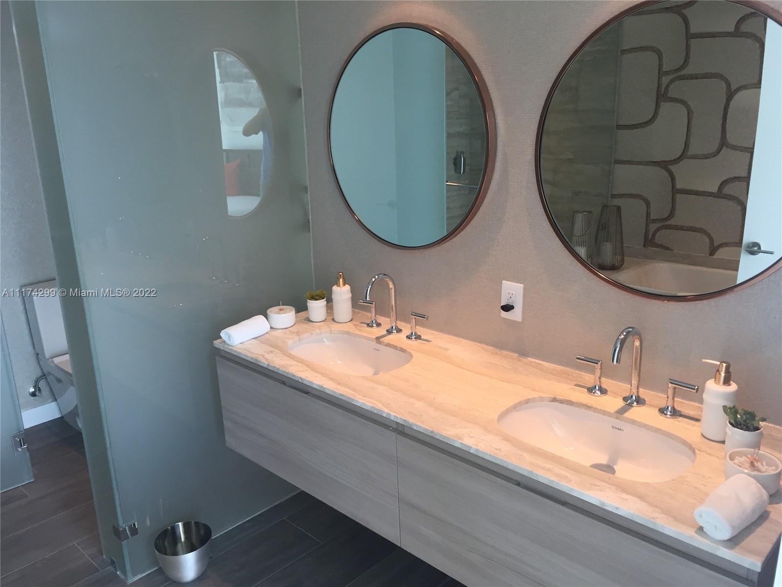 Enjoy the Magnificent and Unobstructed Water Views from this 2 bed/2baths in one of the Most Luxurious Building in Edgewater! Private elevator, foyer, 10 ft ceiling with floor to ceiling glass windows & spacious balcony. Top upgraded finishes and furniture, Miele Kitchen appliances, custom walls, & electric window coverings throughout. Large washer/dryer. Garage parking + Valet. Luxury amenities include beach club, 2 pools, spa, cabanas, water view fitness center and tennis courts. Right in the heart of Wynwood, Midtown and the Design District.