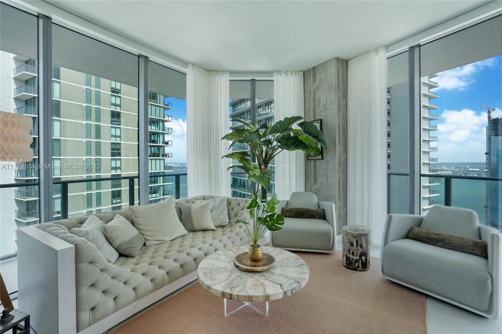VACANT ! Available Fully Furnished OR Unfurnished. Spectacular high Ceiling 4 bedrooms and 4 bathrooms corner Penthouse. High end brand new furnitures, Brand New top of the line appliances with a breath taking 360 degree wrap around balcony. Amazing water views on all of the angle of this super spacious beautiful unit. With luxurious amenities such as Gymnasium, Full Spa, kids playroom, business center, 3,000-square-foot party room, Tennis, Basketball & Racquetball courts, 2 pools, one 75-foot sunset pool with Jacuzzi & BBQ and one amazing rooftop pool with Jacuzzi and BBQ, 24-hour security and valet. Pet Friendly. Residents will also have access to the Paraiso Community Park, marina, Michael Schwartz restaurant & Beach Club. A MUST SEE! LANDLORD SPARED NO EXPENSES IN UPGRADES.