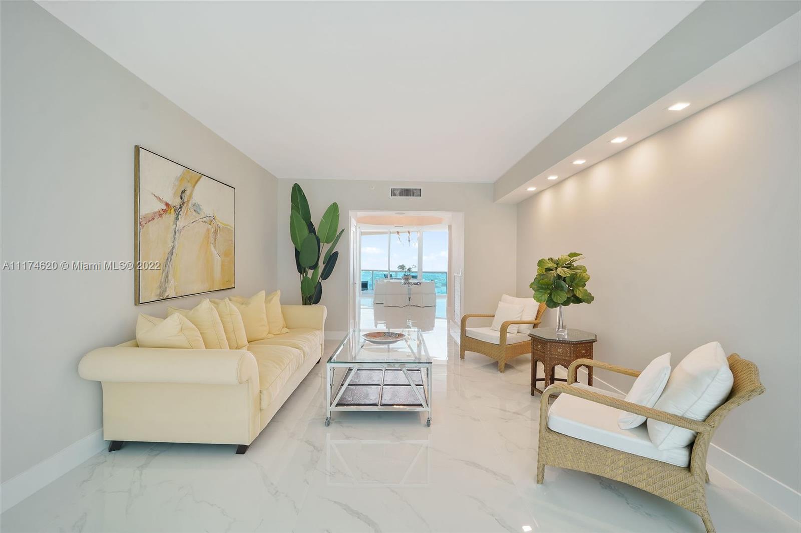 Incredible opportunity to own a completely renovated 3 bed/3 full bath residence on the 43rd floor with a private gallery entrance at the prestigious Portofino Tower in the world renowned South of Fifth neighborhood. Offering the pinnacle level of privacy, this residence is the only home on the 43rd floor of Portofino Tower 3. Spectacular flow-through 2,040 SqFt + private elevator foyer with private & spacious sunrise & sunset balconies accessible from every room, boasting breathtaking unobstructed panoramic views day & night of the Atlantic Ocean, Biscayne Bay, Miami skyline, South Beach & cruise ship channel. Be the first to live in this completely remodeled home offering newly updated floors throughout, kitchen, bathrooms & lighting. A truly incredible & rare offering. Do not miss out!