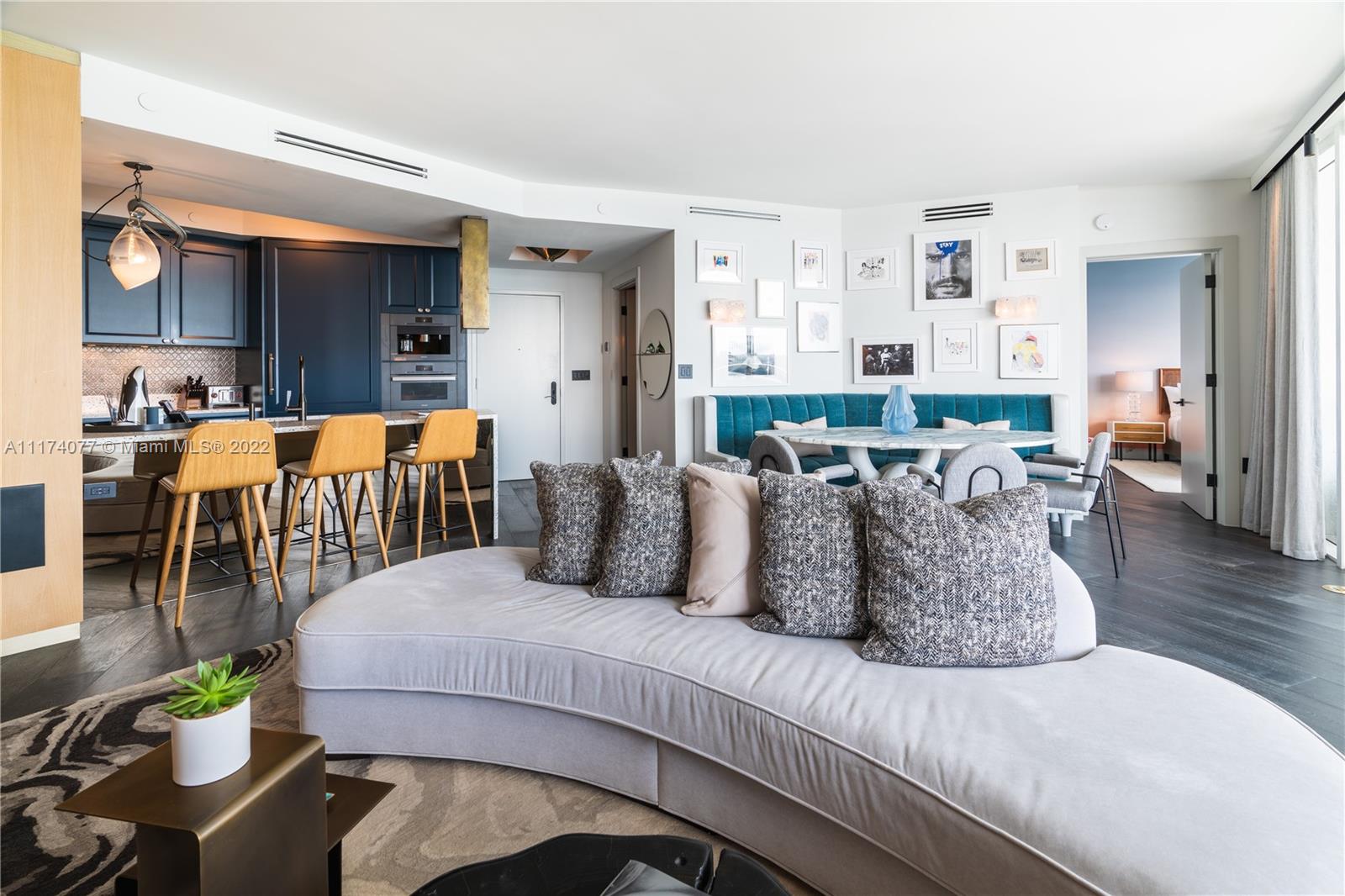 Award-winning design featured on the cover of Luxe Magazine, this fully remodeled unit transports you to different eras with a timeless, yet modern atmosphere. With one-of-a-kind raised soffits, 1004 offers high ceilings throughout the entire space. From custom wall coverings, unique pieces from around the world, and incorporated elements that span decades, no detail has been left unturned in creating this stunning South of Fifth condo. 1004 exudes the Miami appeal by offering a clean, contemporary atmosphere complemented by unparalleled sophistication. A spacious interior along with a generous-sized terrace overlooking Biscayne Bay makes 1004 the perfect home for entertainment and enjoying a luxury Miami Beach lifestyle alongside Murano Grande’s 5-star resort-style amenities.