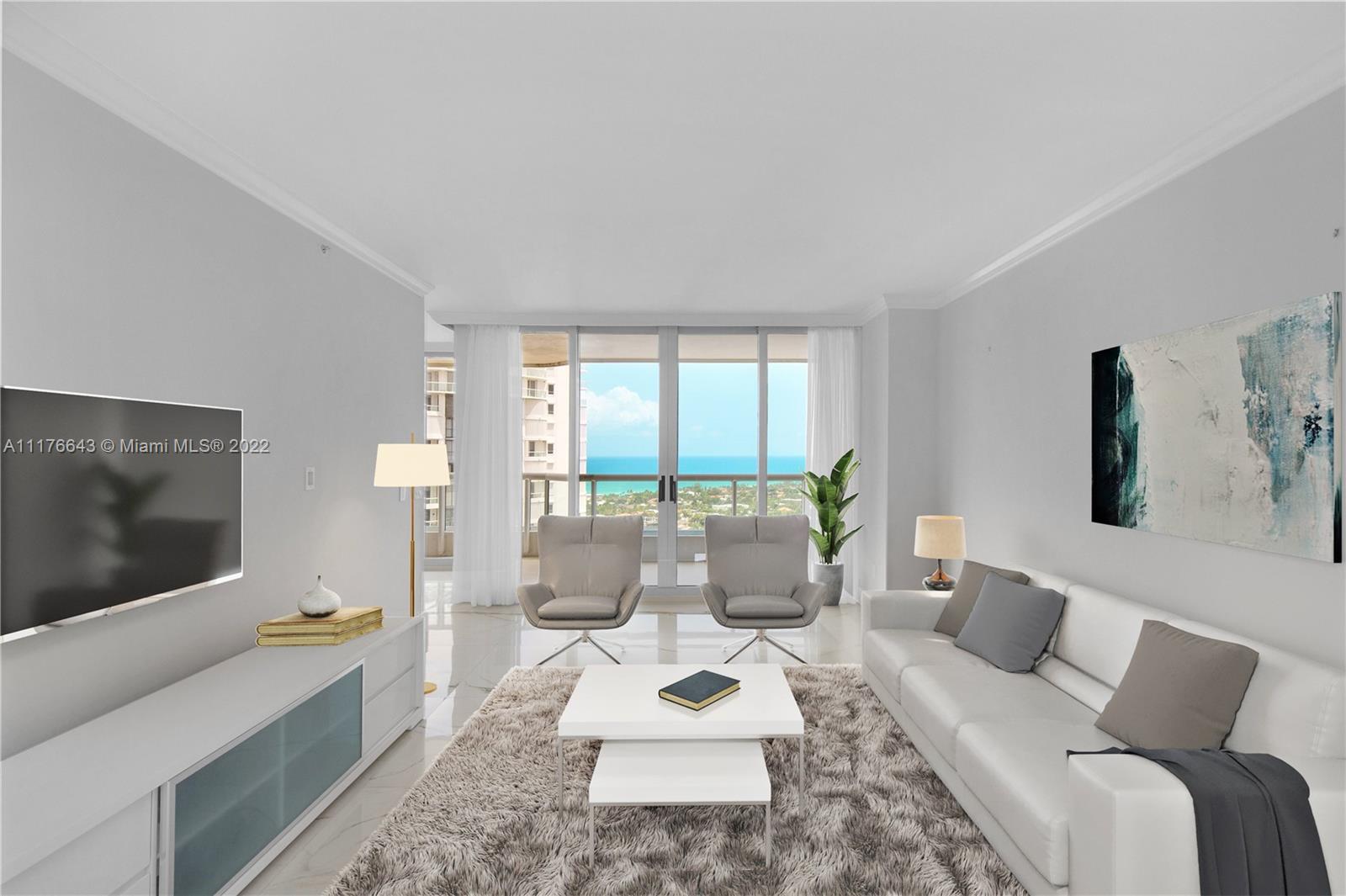 Enjoy gorgeous ocean front views & one of a kind sunrises from your balcony in this exquisitely updated CORNER unit. This spacious unit has a split floor plan including a den. Unit is in pristine shape, completely remodeled & has new cabinetry in the kitchen & laundry room w/ quartz countertops & extended tabletop kitchen with custom storage, new slide in oven with self clean & air fryer, new smart LG washer/dryer, electric shades in the master bedroom, new LED lighting in the laundry room & closets. Large format porcelain tile in the living area & bamboo wood floors in bedrooms. Building has undergone a complete renovation by interior designer Steven G. The point has exclusive amenities including: 3 pools, 4 tennis courts, newly remodeled spa & gym w/ fitness classes, beauty salon & cafe.