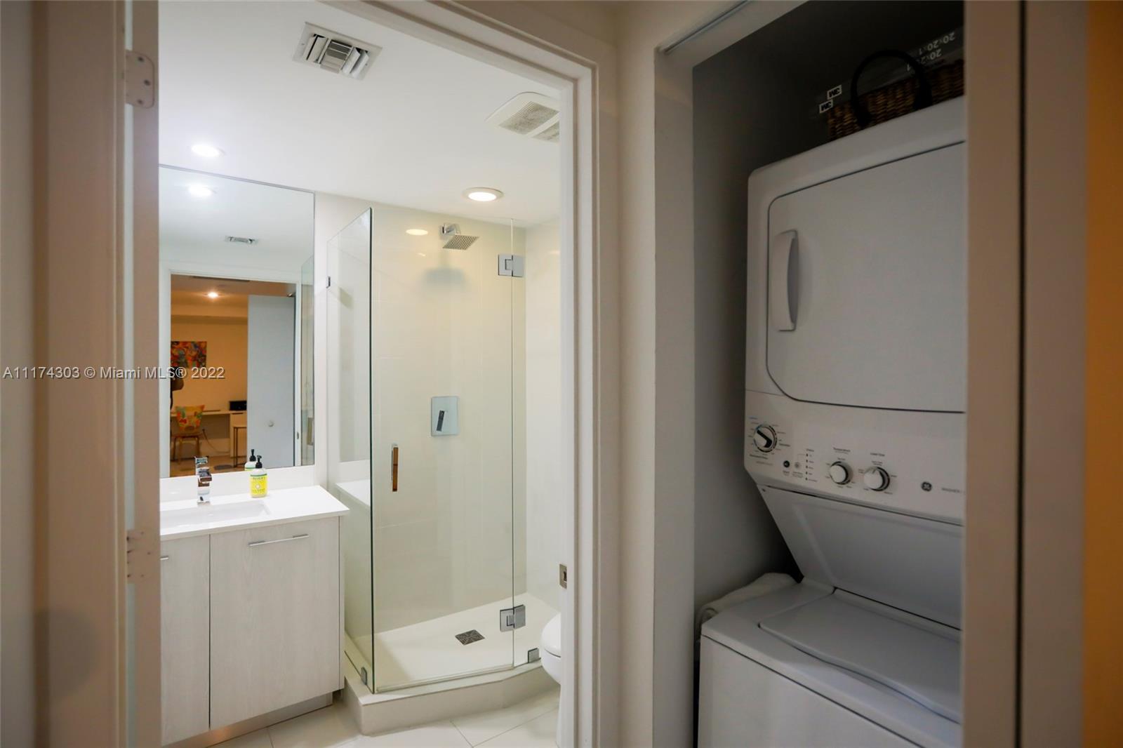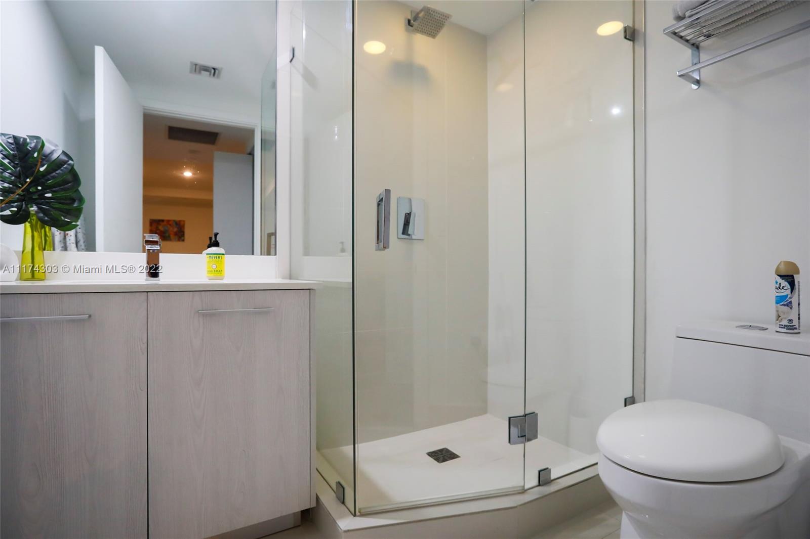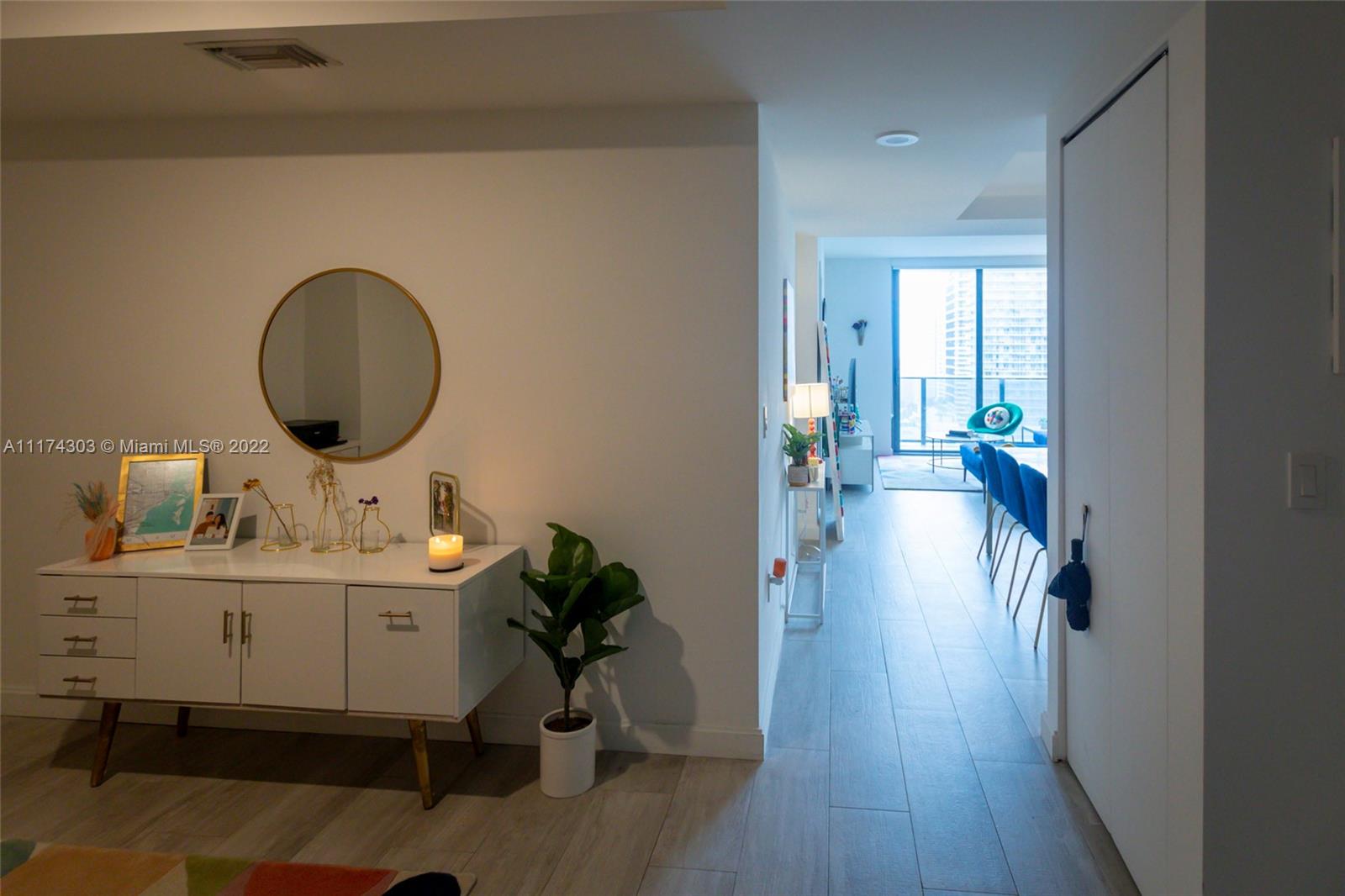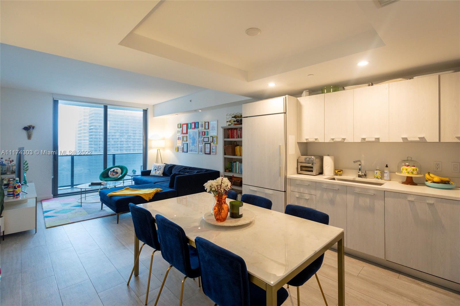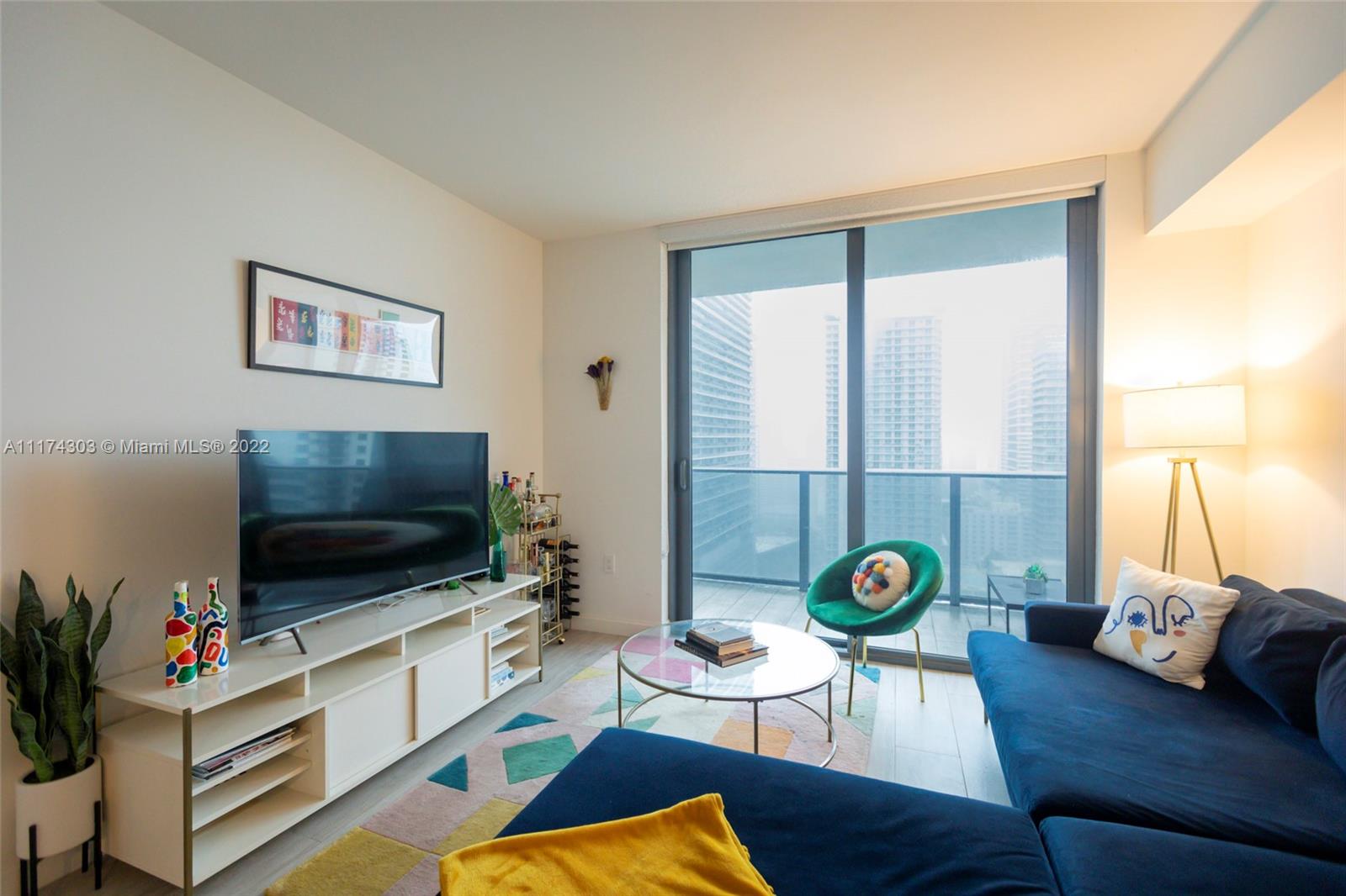 Captivating well-designed 1 bedroom, 2 full bathrooms apartment in the heart of Brickell. As you walk into this charming apartment, the bright kitchen and light wood style ceramic floors become an essential piece to walk straight into a Miami way of living. An open concept full kitchen totally equipped with brand new appliances is its centerpiece. As you keep walking, the dining/kitchen space opens up to a seductive "feel at home" living room space, which sits brightly by 2 French doors´ balcony facing East, giving the unit a breathtaking view of the sunrise. The spacious bedroom w/one full bathroom lies to your right from the balcony. There are 2 closets facing each other on your way to the bathroom. As you walk out from the bathroom, another french door gives you access to the balcony.