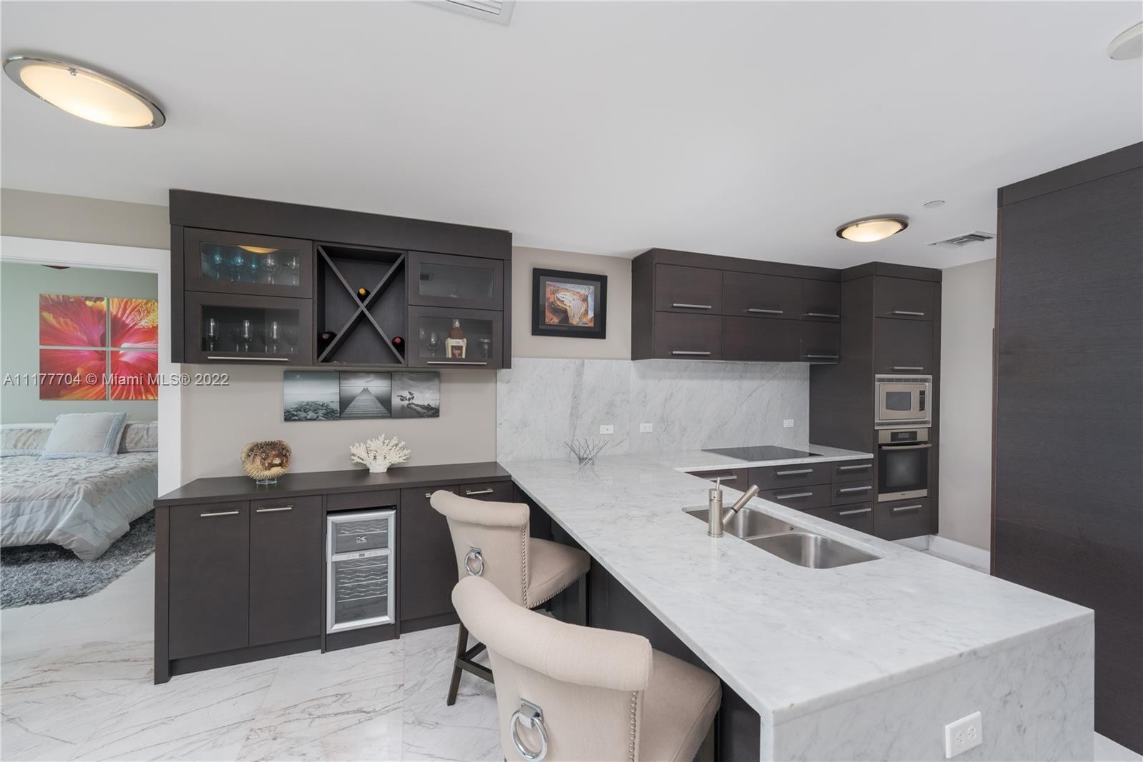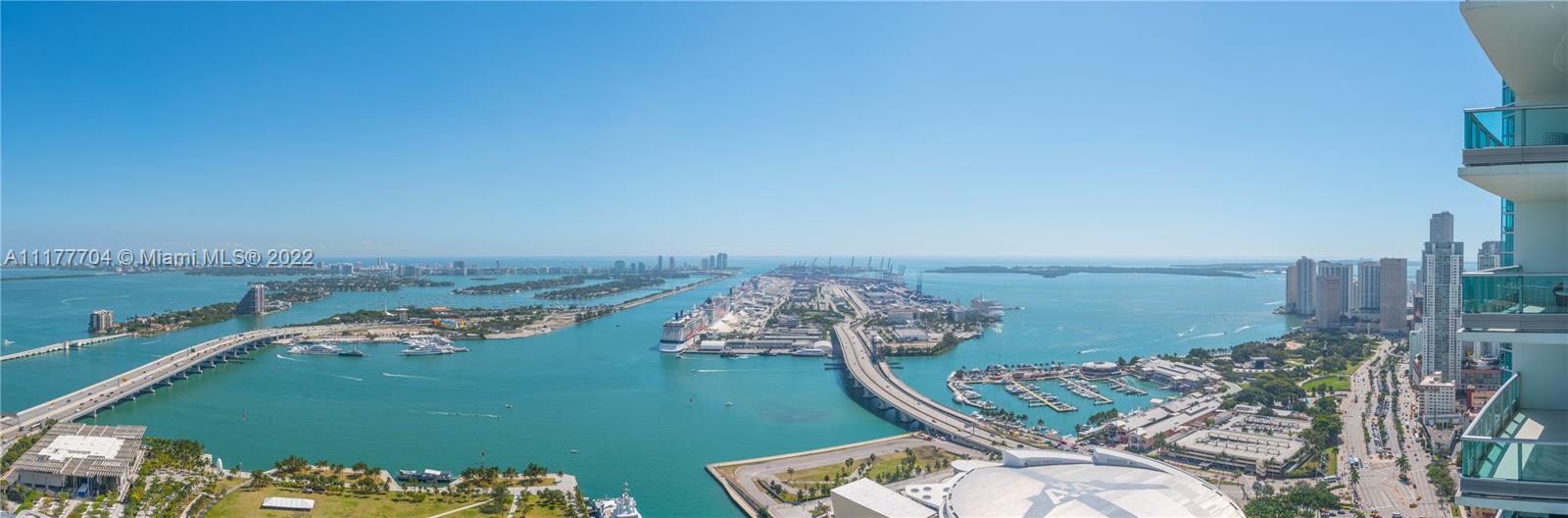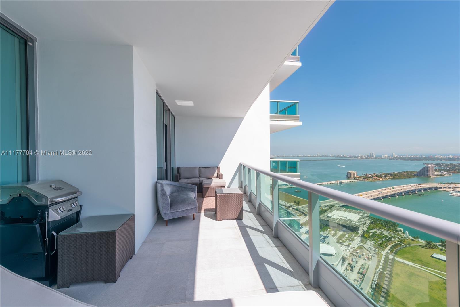 Priced to sell! Amazing flow-thru views, endless water views from the Bay to the Ocean in this Designer furnished ready 3/3 convertible palace in the Sky. Gourmet kitchen, marble Carrera and wood flooring, open layout and so much more. Private elevator access and foyer/entrance, balconies from every room that give beautiful East/West views and overlook the arena. Fabulous Miami location!!