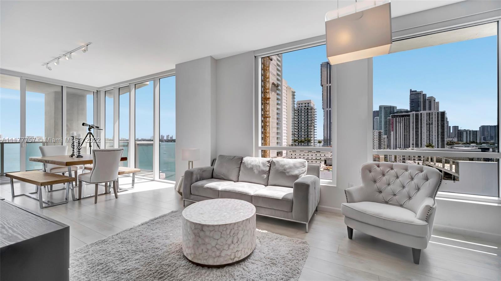 Enjoy your outstanding, panoramic, and unobstructed views of Biscayne Bay and the Atlantic Ocean from this modern style, split 2 bedroom / 2 bathroom corner unit with high-end finishes throughout. Located in Edgewater, you have centrally located within walking distance from Wynwood and Edgewater, while being a short drive to Brickell, Downtown Miami, and Miami Beach. This LEED-certified energy-efficient building offers a community pool on the 8th floor with breathtaking direct water views of Biscayne Bay and the Atlantic Ocean, a fitness center overlooking the bay, a cyber cafe, a movie theater, and a dog park at the ground level of the building. This unit also comes with 1 assigned, deeded parking spot.