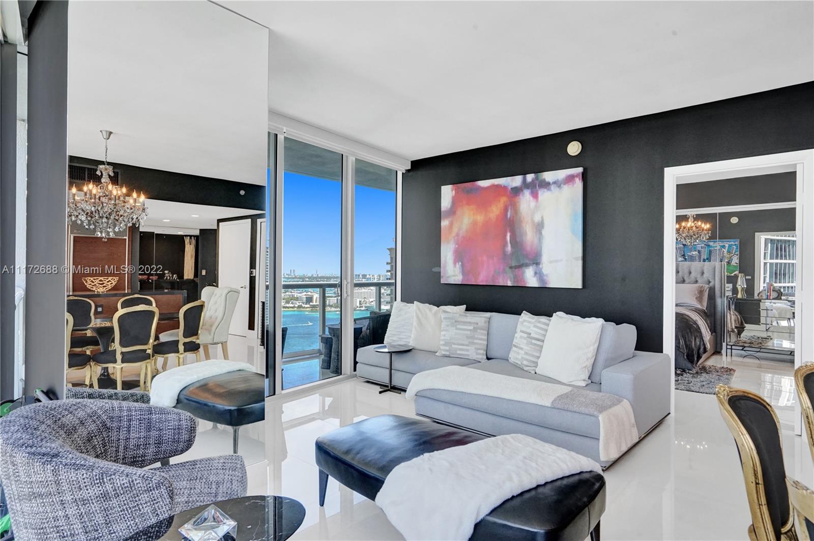 A true floor-to-ceiling glass jewel box, this magnificent 10-line corner unit on the 33rd floor of coveted Tower II at prestigious Icon Brickell, combines elements in perfect harmony. Designer-finished walls in black, juxtapose Icon’s focus on white, creating a balance between the fast-paced city below, and the elegant inviting oasis of your home. The location of this residence is ideal, amidst magnificent views of the Miami River and Biscayne Bay by day, and the dazzling Miami cityscape by night; experience breathtaking sunrises and amazing sunsets daily. Gorgeous porcelain floors, Italian cabinetry, electric blinds, smart thermostat, Sub-Zero, Wolf and Bosch appliances, are just a few of the opulent finishes in this turn-key unit. Two assigned parking spaces add invaluable convenience.
