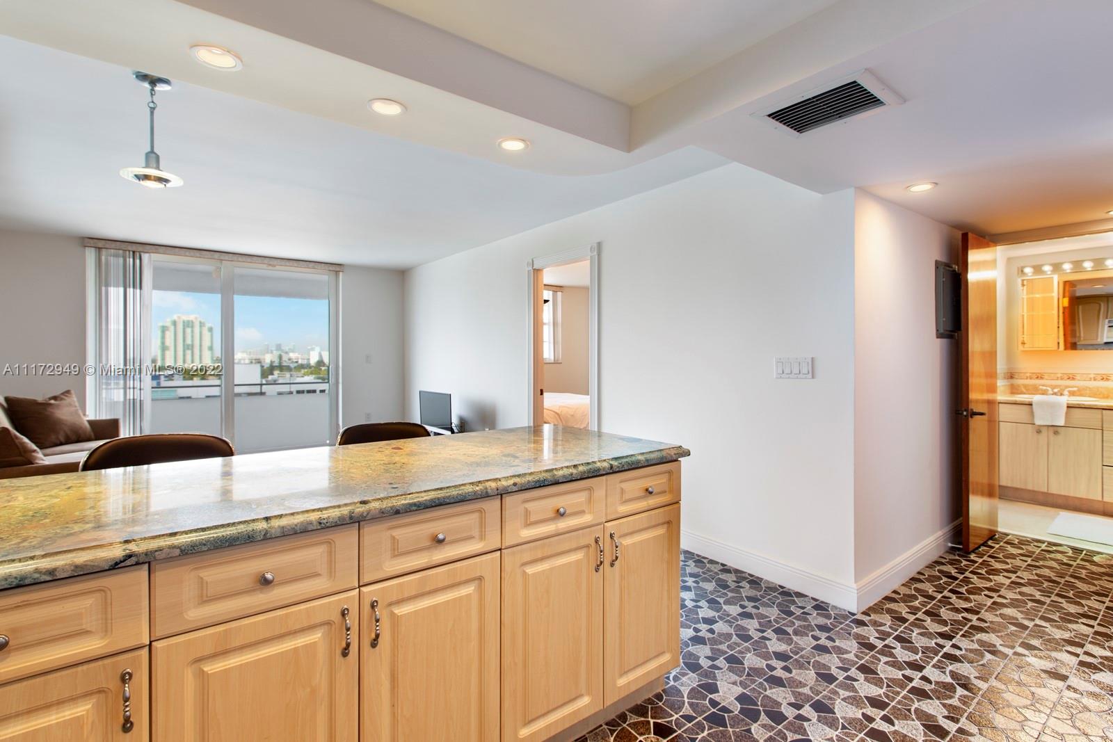 The Royal Atlantic Condo is a classic deco-inspired building located at the intersection of Ocean Ave and 5th Street. The unit is a well-maintained one bedroom with open kitchen, natural light living room, and large balcony overlooking historic South Beach. It features excellent moldings and details, including tile floors that add a unique stylish flair to the interior space. The bedroom and bath, together, offer a lot of counter space. And the unit's three closets make it great for organizing. The building, just south of Lumus park, is in the heart of Miami Beach, meaning typical day-to-day necessities are walking distance from your door. The property also has a gym, a pool, and direct, private access to the beach – putting you a few steps from your bed to the sand.
