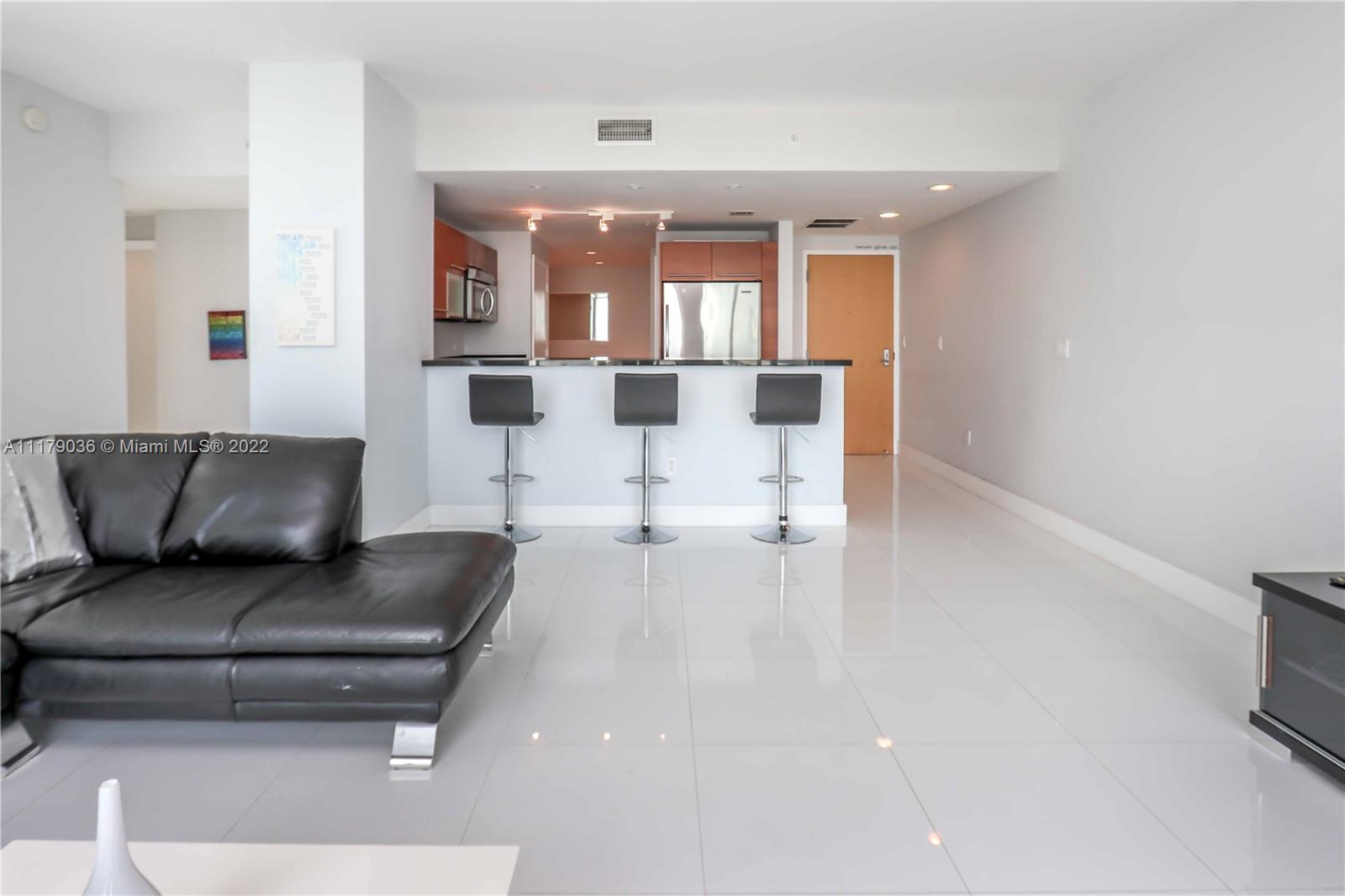 Large corner unit 2 bedroom + DEN at Vizcayne South. The den can be used as a 3rd bedroom, office, home theater or play room. This unit has white porcelain tile floors throughout, direct east and north views, two spacious balconies and large rooms with walk in closets. Vizcayne is located in the heart of Downtown Miami and offers 5 star level amenities with four swimming pools, hot tub, state of the art fitness center, steam-room, sauna and much more. Offered fully furnished. Unit is tenant occupied until July 31, 2022.