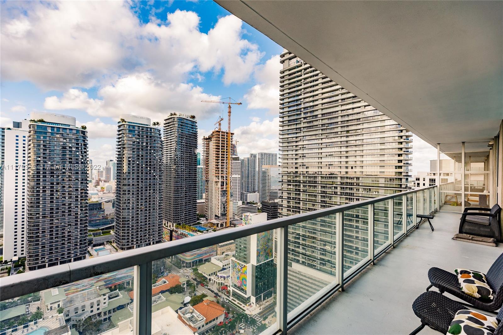 Spectacular Top Floor Penthouse! Spacious and bright 2BR/2BA TANDEM PARKING (2SPACES)! Breath-taking views of city. Big Balcony, Open living-dining/great room layouts. H9-foot-plus ceiling floor to ceiling glass. Gourmet kitchen with S.S appliances, imported granite counter-tops and back-splash, European-styled cabinetry, ample bedrooms. Enjoy the resorts amenities like: 2 pools, gym, playroom room, pool tables, valet, 24hr security. Great location! Close to Mary Brickell Village, Next 2 metro & metro mover, and Brickell City Center.