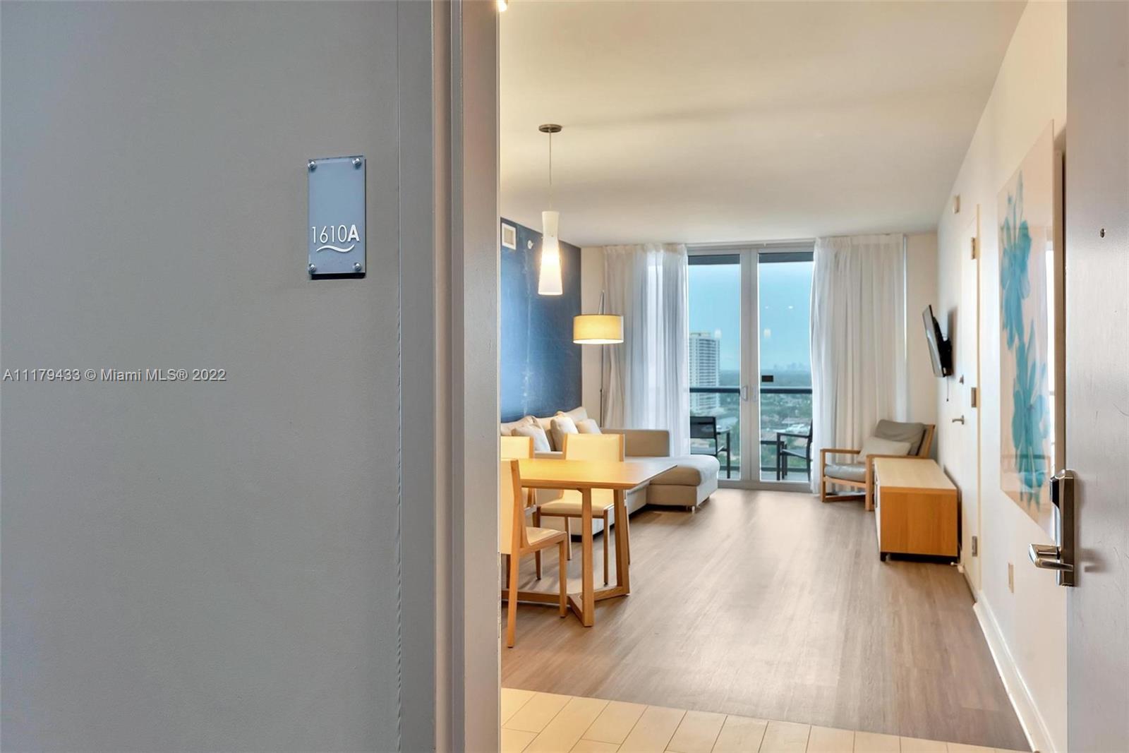 Fully furnished, recently updated with balcony tile and new flooring, a turn-key unit with amazing views of the Intracoastal & ocean. 2 separate entrance doors so the unit can be converted into two apartments and each rented with no restrictions, A 1 bed/1 bath on one side and 1 studio on the other. The first one would have a kitchen, dining/living room, large terrace & washer/dryer.2 Ac zones.The second one, a studio with its own bathroom & terrace. Daily rentals are allowed, by the owner, with a Realtor or directly within the hotel. Resort amenities include rooftop pool,valet, complimentary shuttle, and service to Hallandale Beach and hyde's resort club, fitness center w/ Intracoastal view. Maintenance includes electricity, internet/cable, water, & all amenities. Generating great income!