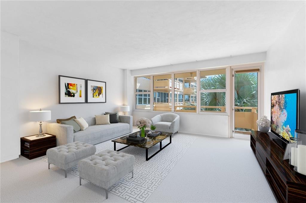 Don’t miss the best valued one bedroom in the Coral Ridge Towers Community! Enjoy a sunny South-East exposure with views of the Ocean from your large private balcony. Some photo have been virtually staged for marketing purposes. This apartment features hurricane impact windows and door, with ample closet space. This building has completed their fire sprinkler upgrades. Coral Ridge Towers offers all the conveniences of quaint beachside community living, with the peace of mind of 24/7 security and professional onsite management. This 55+ Co-Op community is located on the barrier island with the beach, shopping, grocery stores and restaurants within walking distance. The building offers an array of great amenities including a heated pool with lush tropical landscaping, exercise room and more.