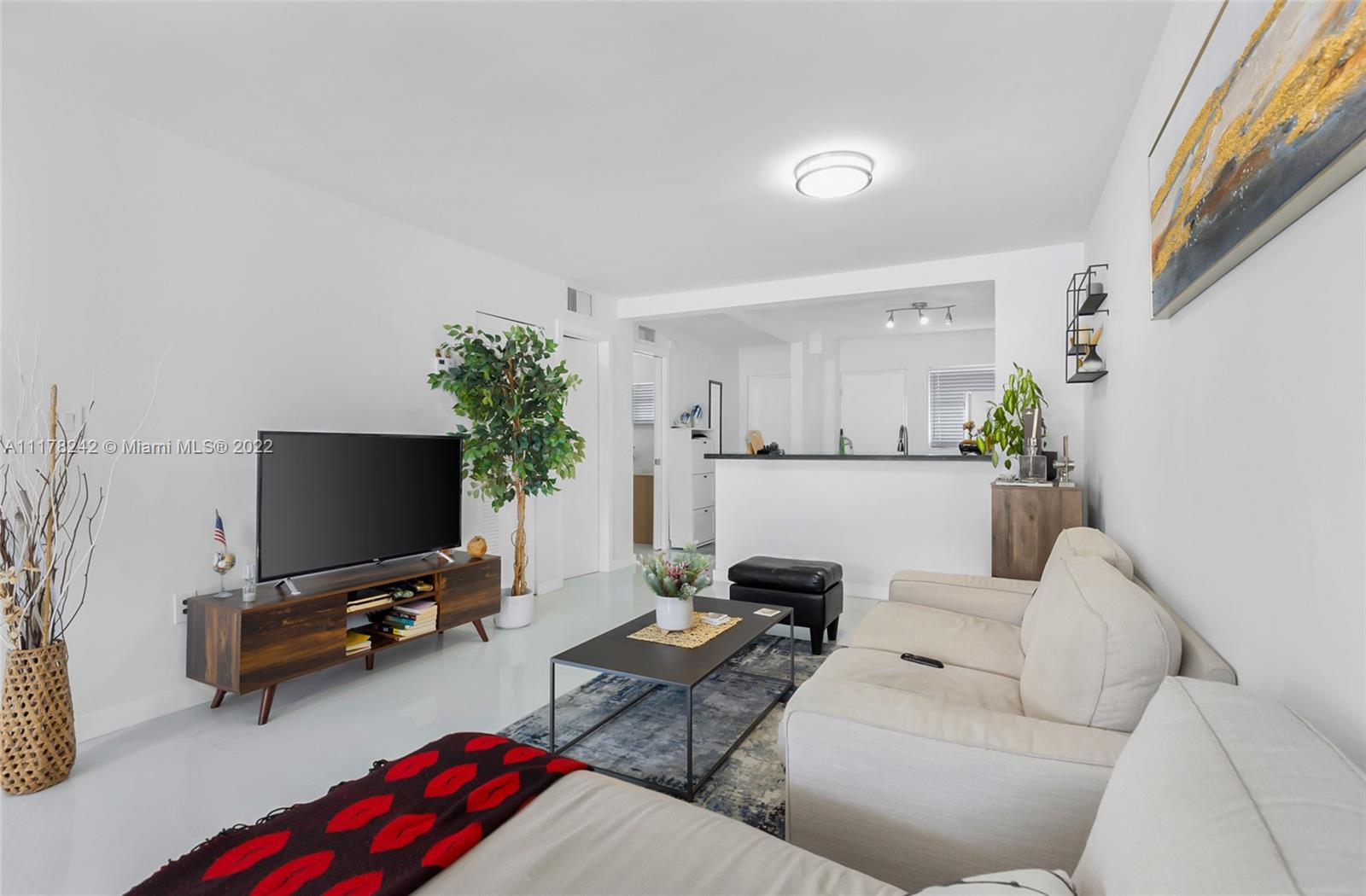 Beautiful 2 bed / 1 and half bath recently renovated apartment on Lincoln Road . Southern exposure with plenty of sunlight . Neutral ceramic floor throughout the apartment , open kitchen with stainless steel appliances. Low maintenance fee , assigned parking space.