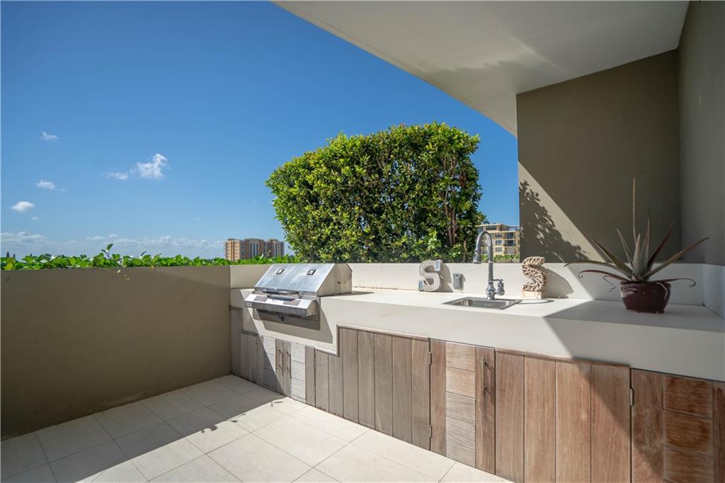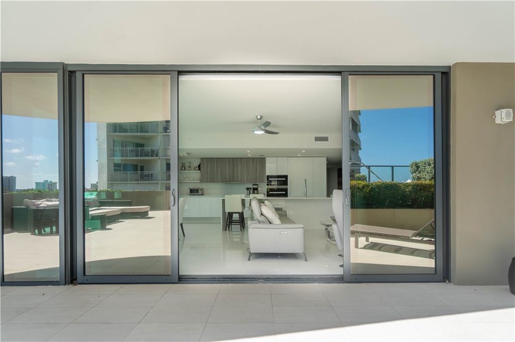 This 3/3 condo offers an amazing terrace that is over 2000 square feet of outdoor living in addition to the 1955 square feet of air conditioned living space. All modern high-end finishes in the unit. Electric shades throughout give you privacy with the push of a button. Step outside on your terrace and enjoy your private jacuzzi, summer kitchen, and outdoor shower! The building offers a resort style setting that includes valet, gym, pool, spa, sauna, steam room, chair service for the beach and a dog walk area.
