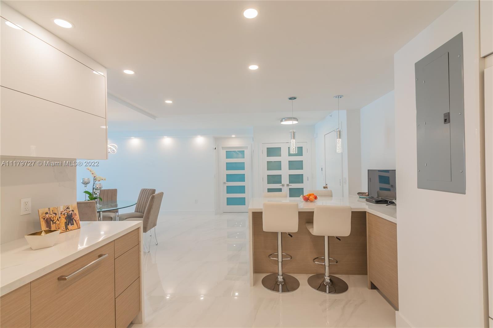 Imagine the perfect Bal Harbour condominium. You’ll awaken each morning to spectacular views of the Atlantic, spend the days lounging on the beach, exercising on beautifully landscaped trails, walk across the street to the world class Bal Harbour Shops and end your day on your beautiful balcony enjoying both ocean and intracoastal views. This open plan 2 bdr, 2 bath home has undergone a complete renovation. The kitchen boasts quartz counter tops, Bosch and Fisher Paykel appliances, 30” white porcelain floors throughout, Spa quality bathrooms and hurricane impact windows with electronic blackout shades in the bedrooms and sheers great room. The building world class amenities, concierge and valet service, full beach and pool service, a restaurant, gym, hair salon and more.
