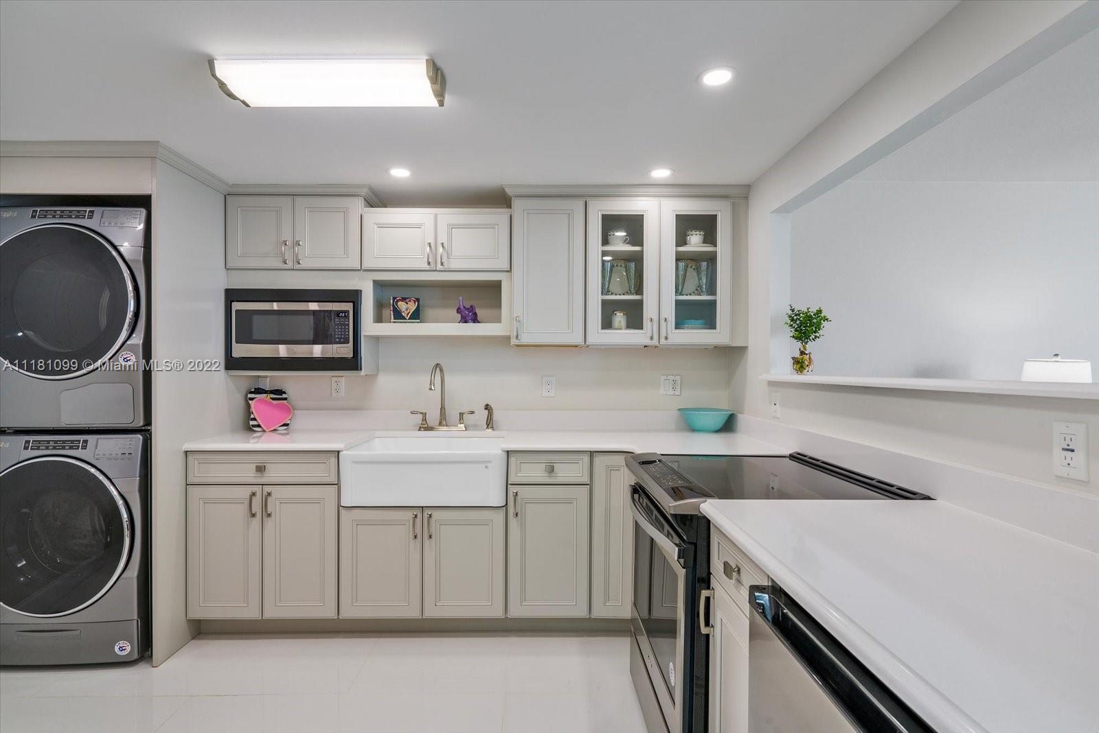 One of the MOST DESIRABLE locations in Miami Beach, Belle Isle. Beautifully remodeled, oversized unit with water and park views from all rooms. Unit offers natural light, impact windows & doors, spacious balcony, washer & dryer, large bedroom with walk-in closets & a 2nd full bathroom. The building has almost completed a $25m renovation updating the lobby, 2nd floor amenities, gym, concrete work, painting and more. Amenities include heated pool, marina, fitness center, solarium, valet, front desk+. The building is close to a kids park, dog park, Lincoln Rd, World Renown The Standard Spa, Sunset Harbour, beaches, shopping & much more. Washer & Dryer are installed where a full-sized refrigerator would go. Unit currently has a half-sized refrigerator. No dishwasher currently in this unit.
