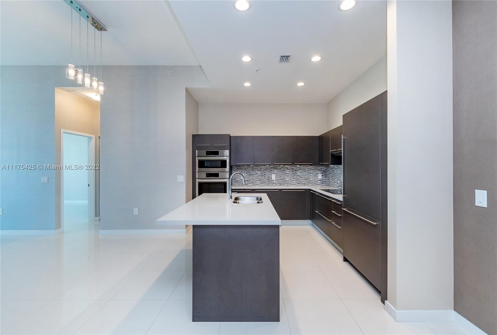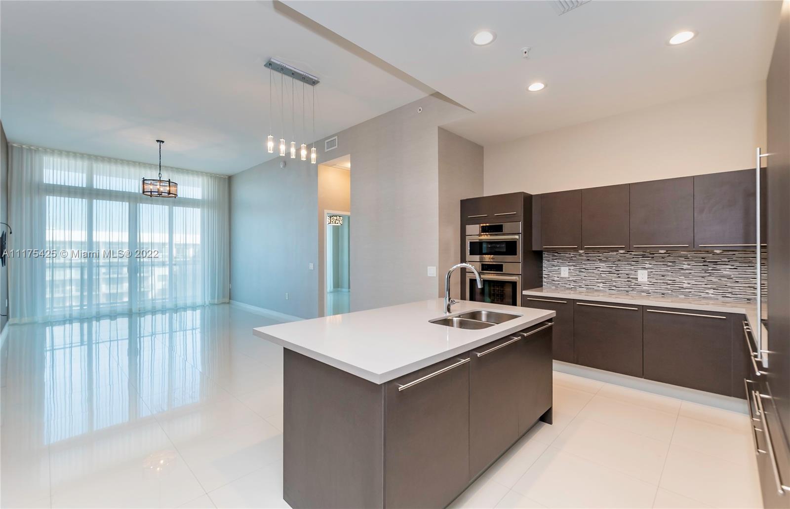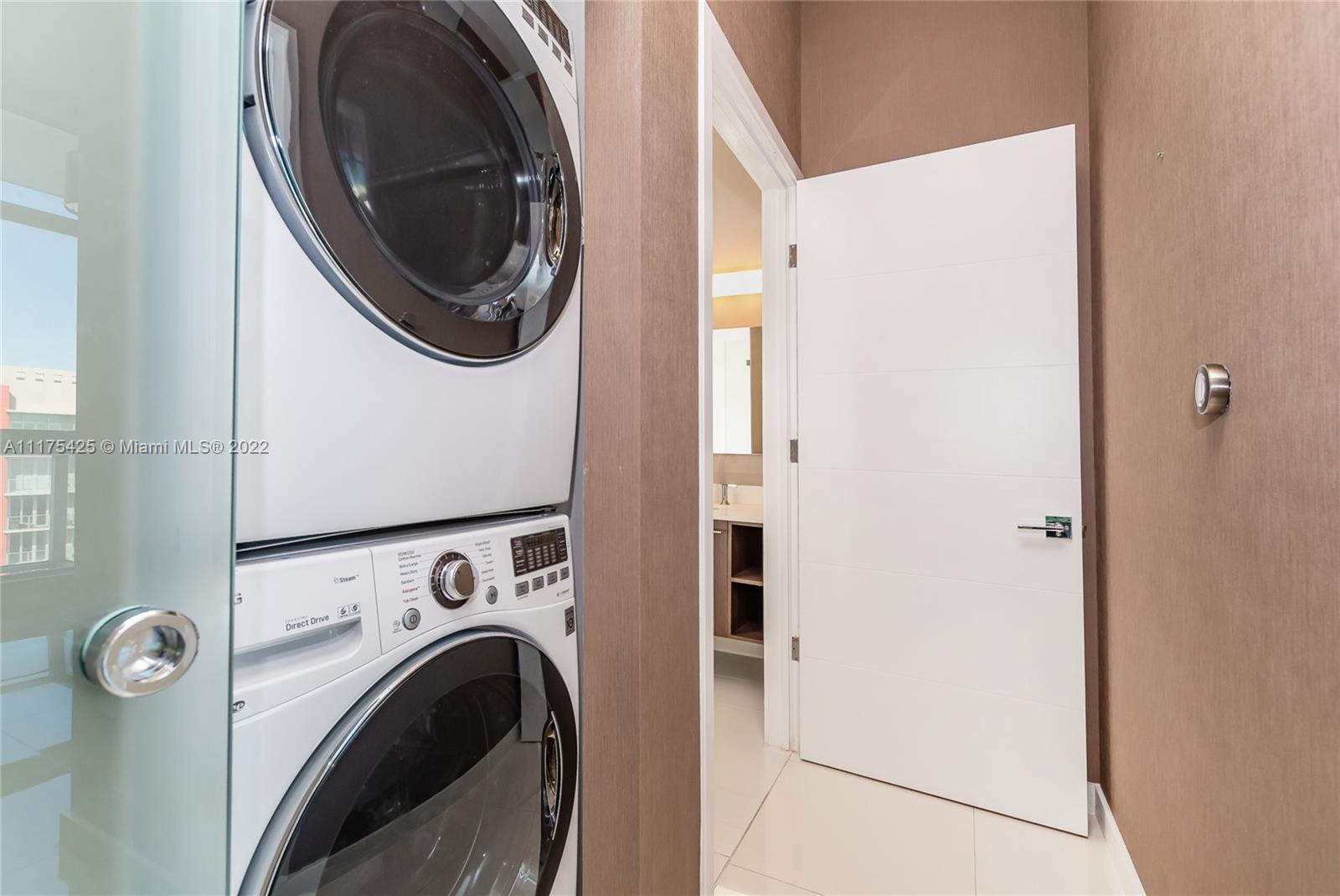 Gorgeous condo with two bedrooms/two bathrooms plus den. The only one in the complex with high volume washer and dryer with beautiful sliding glass door for easy access, tankless Stiebel water heater, wallpaper walls, blackout roller blinds (wireless/battery operated), custom built-in furniture and professional installed TV wall mounts. Stainless steel Bosch appliances: dishwasher, side-by-side refrigerator with ice & water dispenser, microwave & electric range. Smoke detectors, beautiful cabinets & closets. Note: the unit includes two parking slots on 5th floor in front of the elevator. Driving Directions: