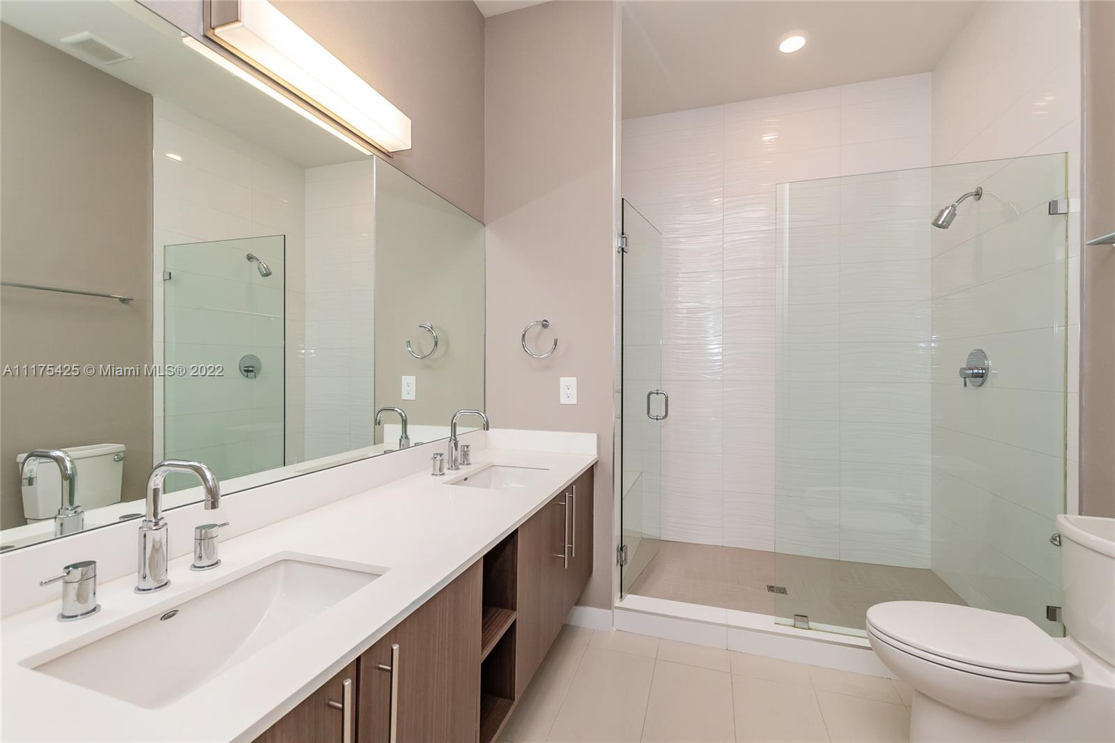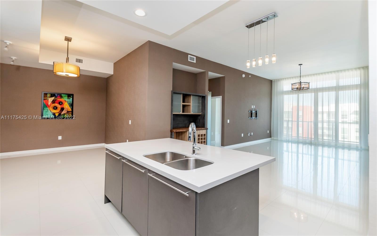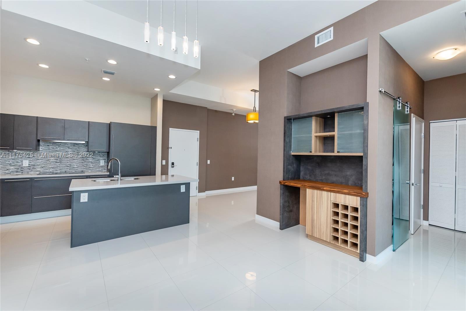 Gorgeous condo with two bedrooms/two bathrooms plus den. The only one in the complex with high volume washer and dryer with beautiful sliding glass door for easy access, tankless Stiebel water heater, wallpaper walls, blackout roller blinds (wireless/battery operated), custom built-in furniture and professional installed TV wall mounts. Stainless steel Bosch appliances: dishwasher, side-by-side refrigerator with ice & water dispenser, microwave & electric range. Smoke detectors, beautiful cabinets & closets. Note: the unit includes two parking slots on 5th floor in front of the elevator. Driving Directions: