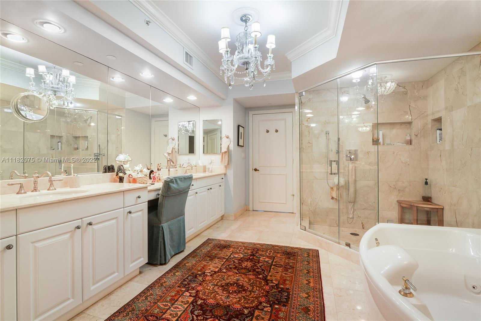 Step off your private elevator and enter the foyer of this magnificent 3 bedroom, 3 bath apartment that has been lovingly cared for and updated by original owner. Enjoy the sunrise over the intracoastal and ocean, and the sunset from the master bedroom balcony. The spacious living area also has a renovated media room with decorator custom built-ins and wall decor. Marble and porcelain tile floors, the gourmet kitchen has been opened with breakfast bar, new appliances and leather granite counters. Guest bath was recently renovated, as well the serene master suite enjoys quiet times with the quiet rock that was installed. The oversized laundry room has access from the condo, with lots of storage. Also included are three owned parking spots, plus additional parking with Valet.