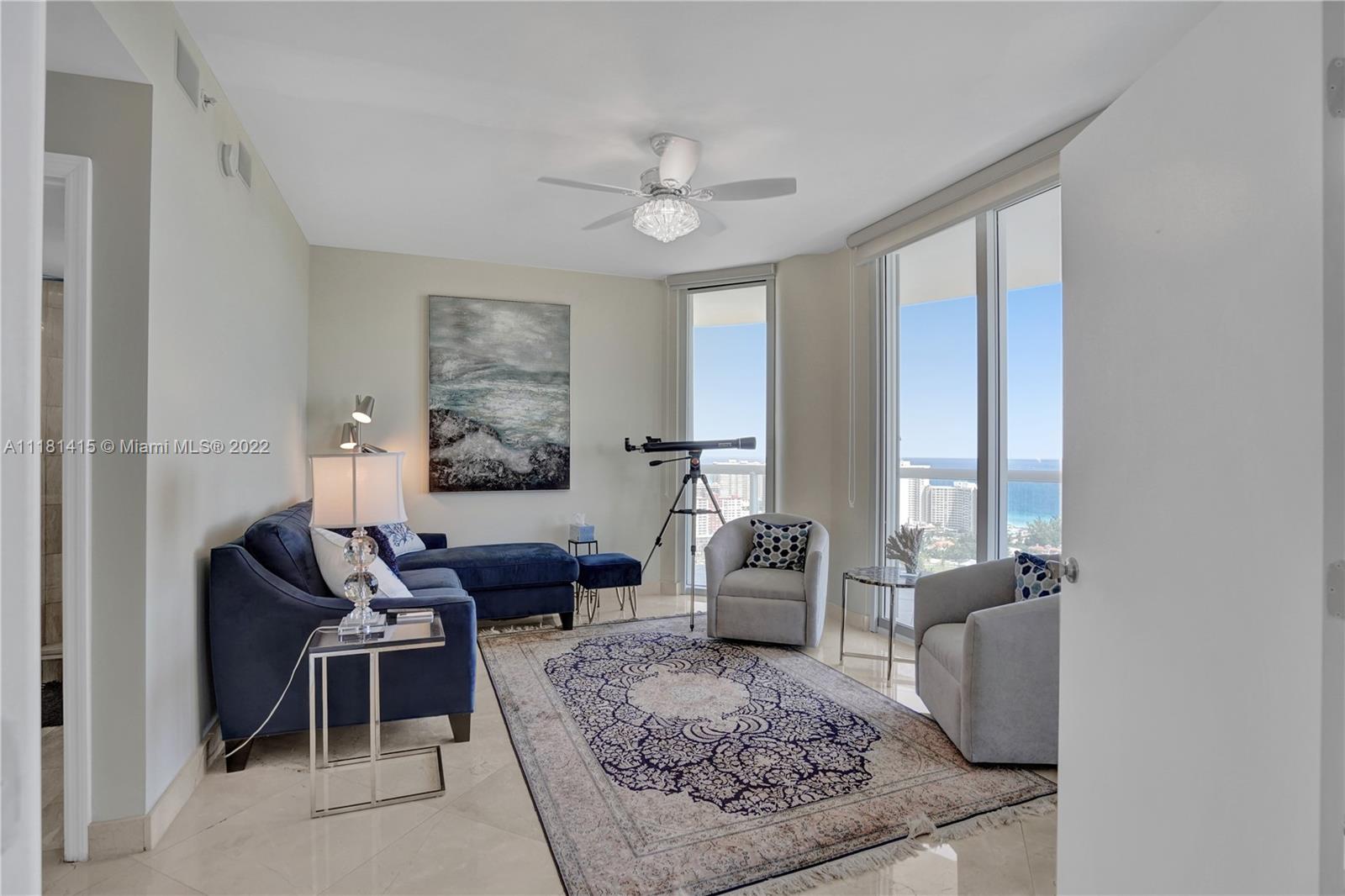 The best Northeast corner in the complex! Spacious floor plan, 3 bedrooms 3,5 baths in one of the most exclusive addresses in Aventura. Totally unobstructed vibrant views from floor to ceiling windows and filled with sunlight. Wrap around balcony with panoramic ocean and city views. Private elevator. Marble floors in living areas and carpet in the bedrooms. Motorized blinds, built ins, huge closets and lots of storage space. All amenities included in maintenance: spa & fitness center, 3 pools, tennis courts, BBQ area & kids playground. Resort lifestyle. Outdoor café, hair salon. Walking distance to restaurants and shops.