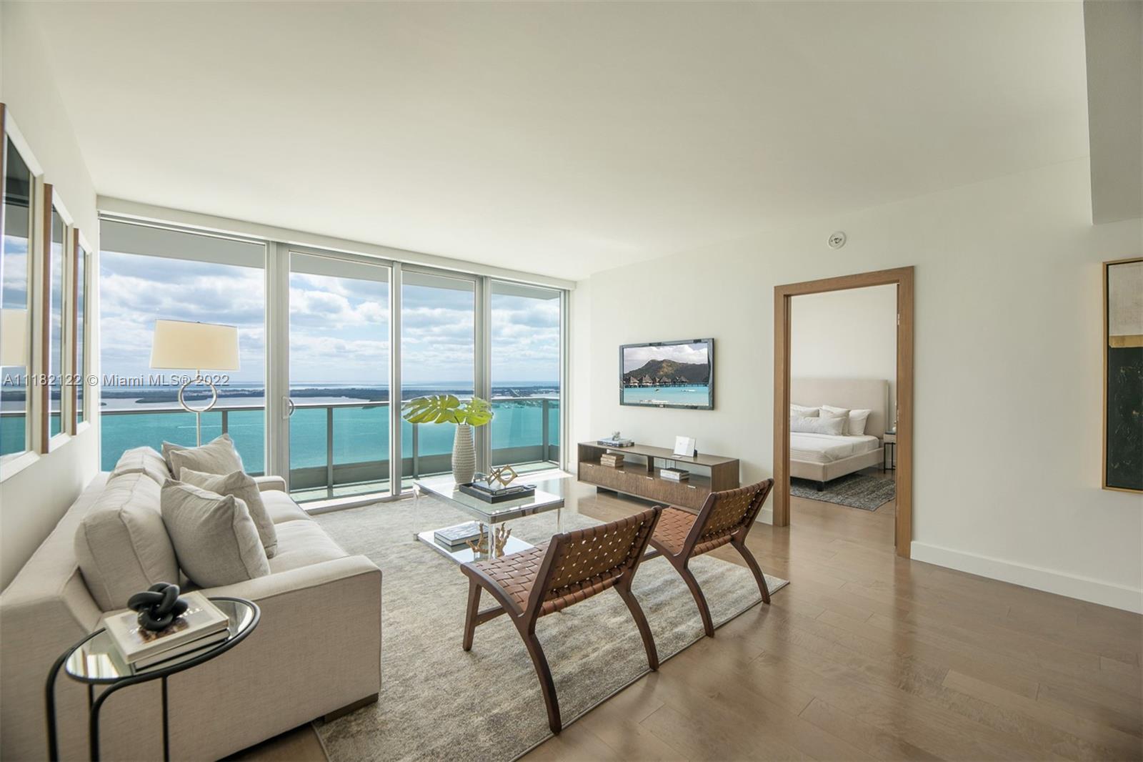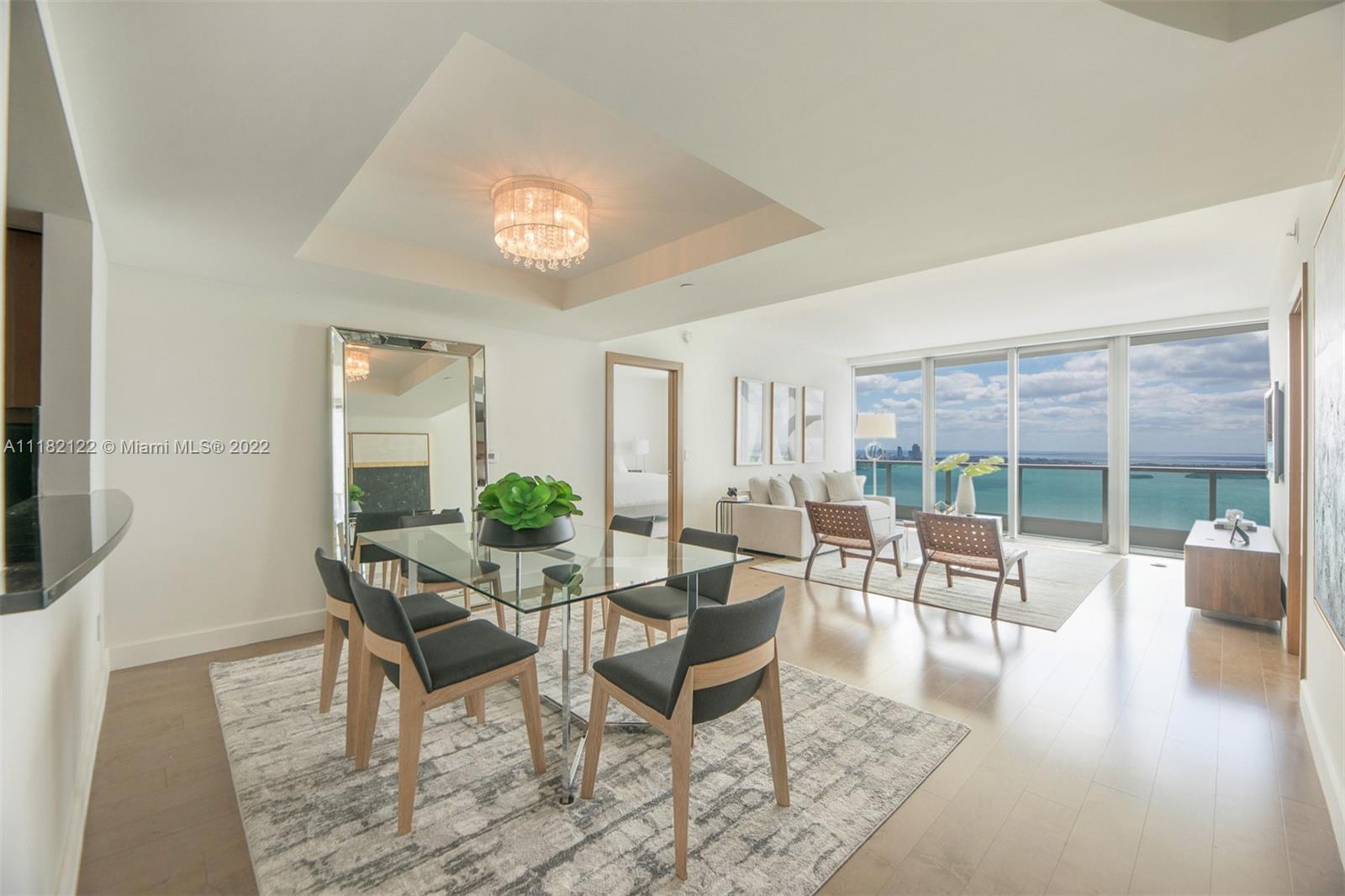 Highest floor direct bay 2 + den available at Jade Brickell. Spacious floorplan where den can be converted to 3rd bedroom with its own connecting bathroom. Recently upgraded wood floors, interior doors, freshly painted and motorized window treatments in the bedrooms. Jade Brickell is the most desirable ultra-luxury waterfront building in Brickell with private foyer & elevators. Extra-large fitness center, spa and heated waterfront pools. Pet friendly quiet part of Brickell with its own bay walk. Complimentary valet parking for guests. Vacant and ready for immediate occupancy.