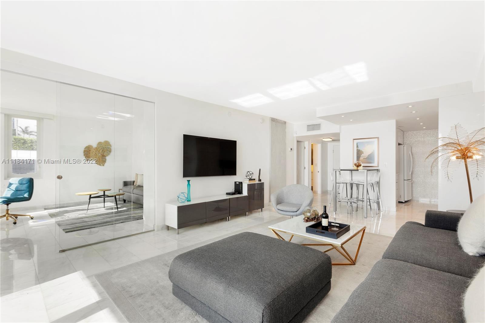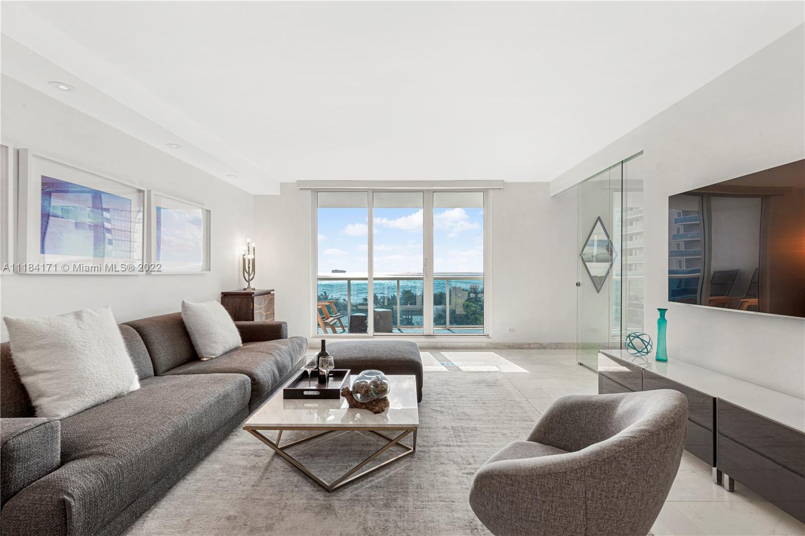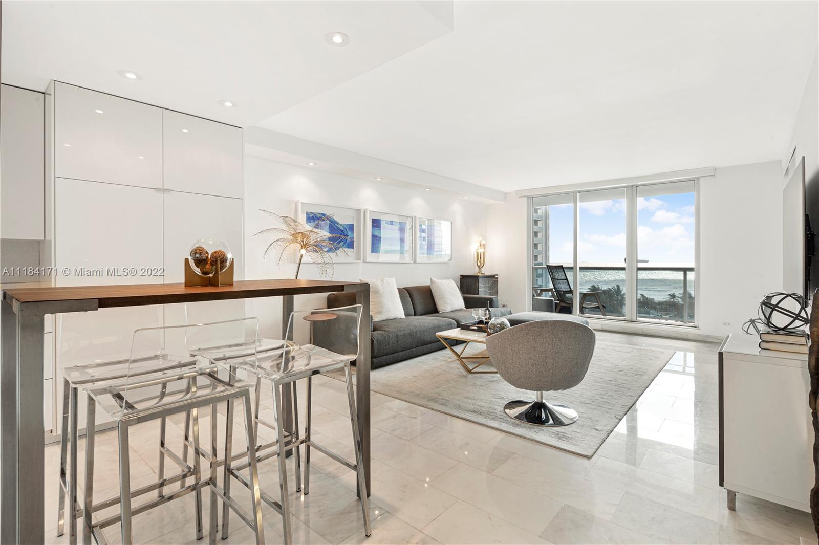 Enter and be immediately greeted by the blues of the Atlantic Ocean. This renovated 900SF corner unit offers direct ocean views, and boasts natural light and calming breezes. Featuring marble floors, recessed lighting, powered black-out shades, in-unit washer/dryer, a den / second bedroom, ample storage, and a spacious balcony, this residence comes beautifully furnished and turnkey. The property's hallways, unit doors and elevators have been elevated to the standards of the adjacent 1 Hotel, and the valet and lobby areas are next. Short-term rentals are allowed at the Roney Palace, making this a desirable and profitable investment! Located just blocks from Lincoln Road and short rides to Miami Design District, Wynwood, Downtown Miami and international airports. Brokers: see 3D tour!
