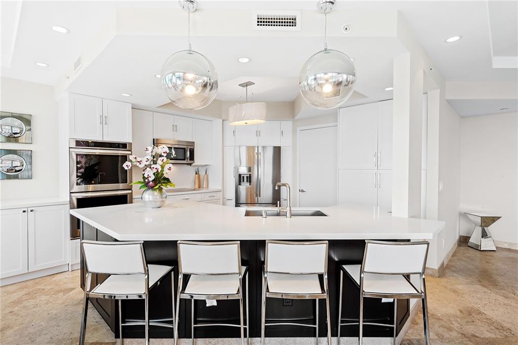 A fully renovated, ready to move in, 3/2.5 in prestigious THE PALMS. Unit has two balconies facing the ocean and city views! No need to cross the street to get to the beach, backyard is the sand! Private elevator straight to your unit with your own private foyer & double door entry, in Tower 1... Amenities include 24HR Security, Tennis (currently being renovated), Valet, 2 story Gym with showers and private room with massage tables for use, Racket ball court, ball room, billiard room, private dining room, Conference room, 2 pools! Dream place, i think so! Schedule for showing!