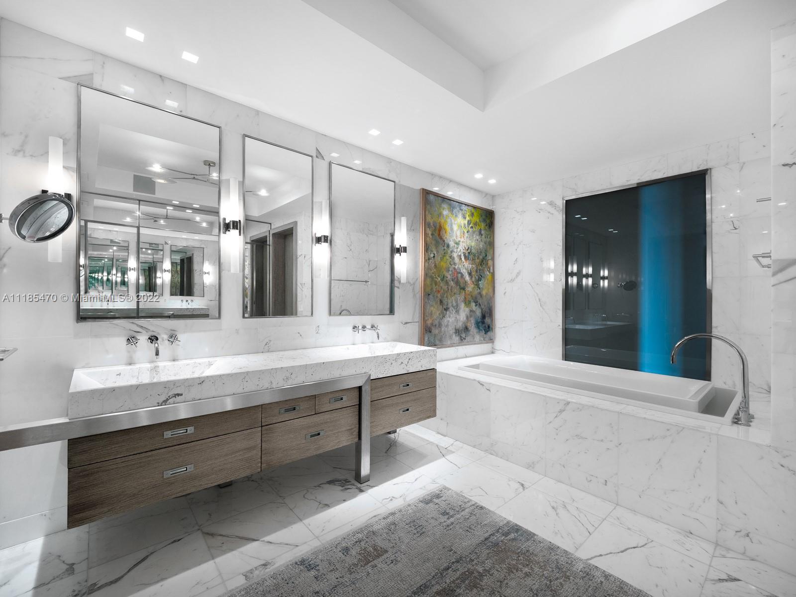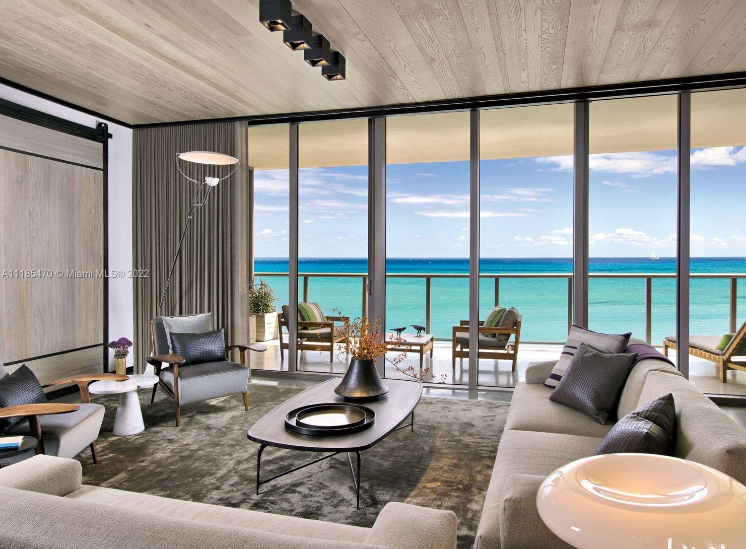 An EXTRAORDINARY FULLY FURNISHED One of a Kind dynamic & contemporary residence awaits you.Featured in South Florida LUXE magazine, this magnificent 4 bedroom +Staff +Family room 5 & 1 half bath unit is a work of art! The well thought and intricate interior designed by PH1 Design is rich and refined with subtle industrial accents like polished concrete floors, raw steel baseboards and crown moldings, warm cedar wood planks along the walls and ceilings,intricate lighting that is sculptural and nestled in tracks highlight refined craftsmanship. East & West balconies are inviting outdoor spaces for lounging and relaxation. Breathtaking views capture Sunrises over the Ocean and Sunsets above the city skyline as well as the bay. St.Regis offers restaurants, Oceanfront pool,Remede Spa &Wellness