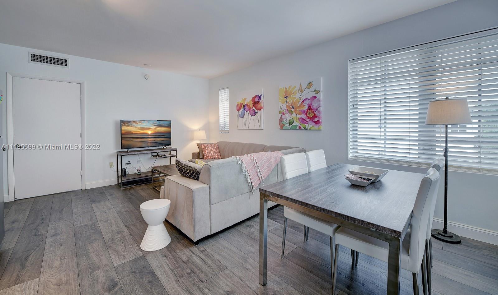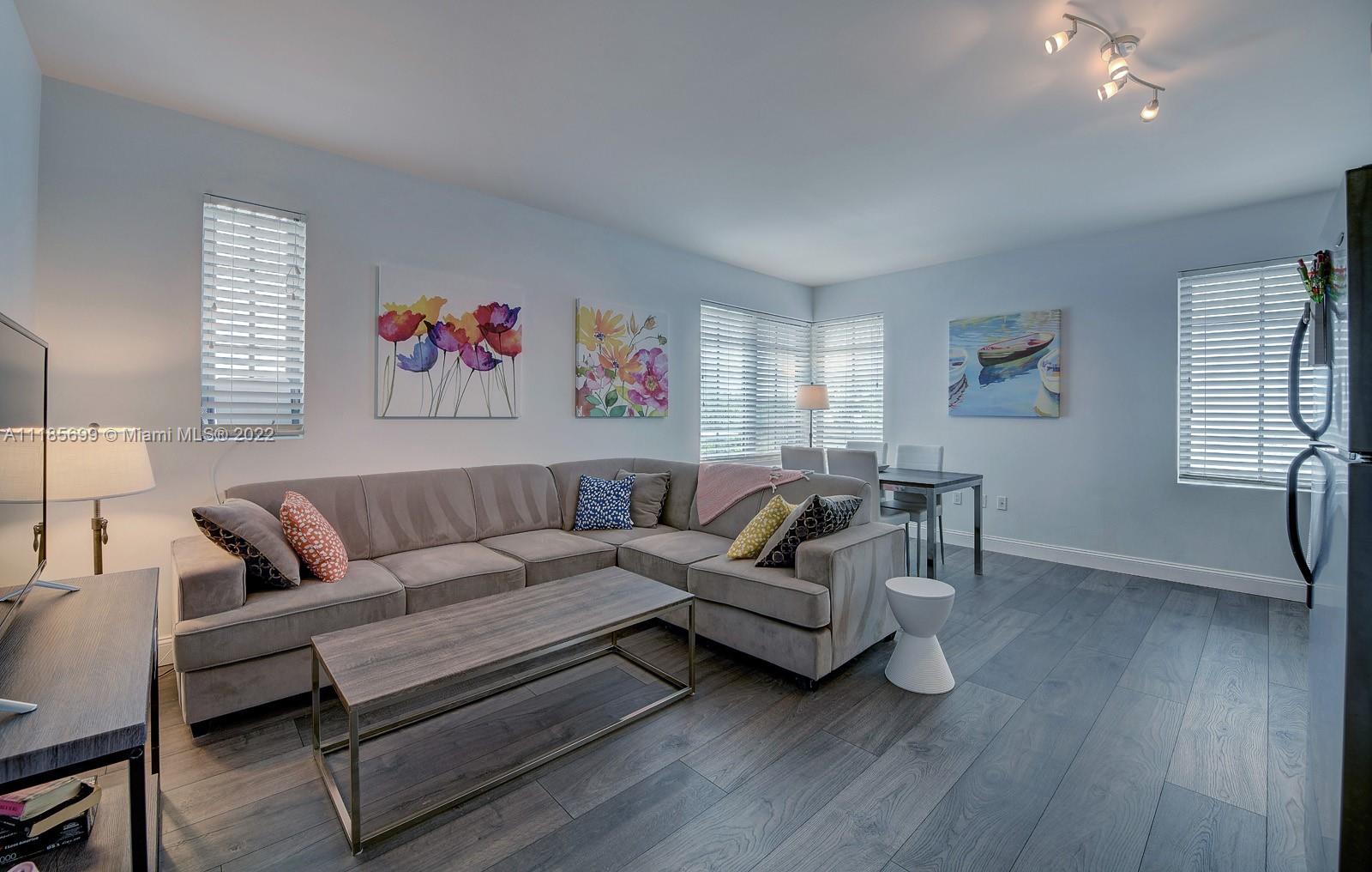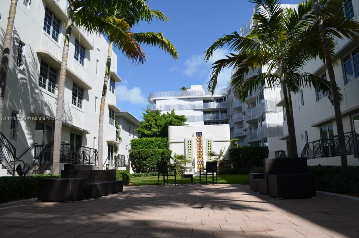 Top floor corner unit, beautifully light, deceptively spacious, wood floors Italian kitchen & bathroom. Laundry in unit.Hurricane impact windows overlooking the internal Art Deco courtyard and fountain. Fabulous Artecity , two heated pools, beach service, gym, concierge, guest parking, pets welcome, 30 day rentals allowed. Exclusive Collins Park neighborhood, 2 blocks to your own beach chairs& umbrella at 21st St between Setai & W hotels. Perfect investment, vacation, or permanent home. Can rent min 30 days . Monthly fees to Condo Assoc & Master $ 339.48 & $ 364.99 - Total $ 704.47 month