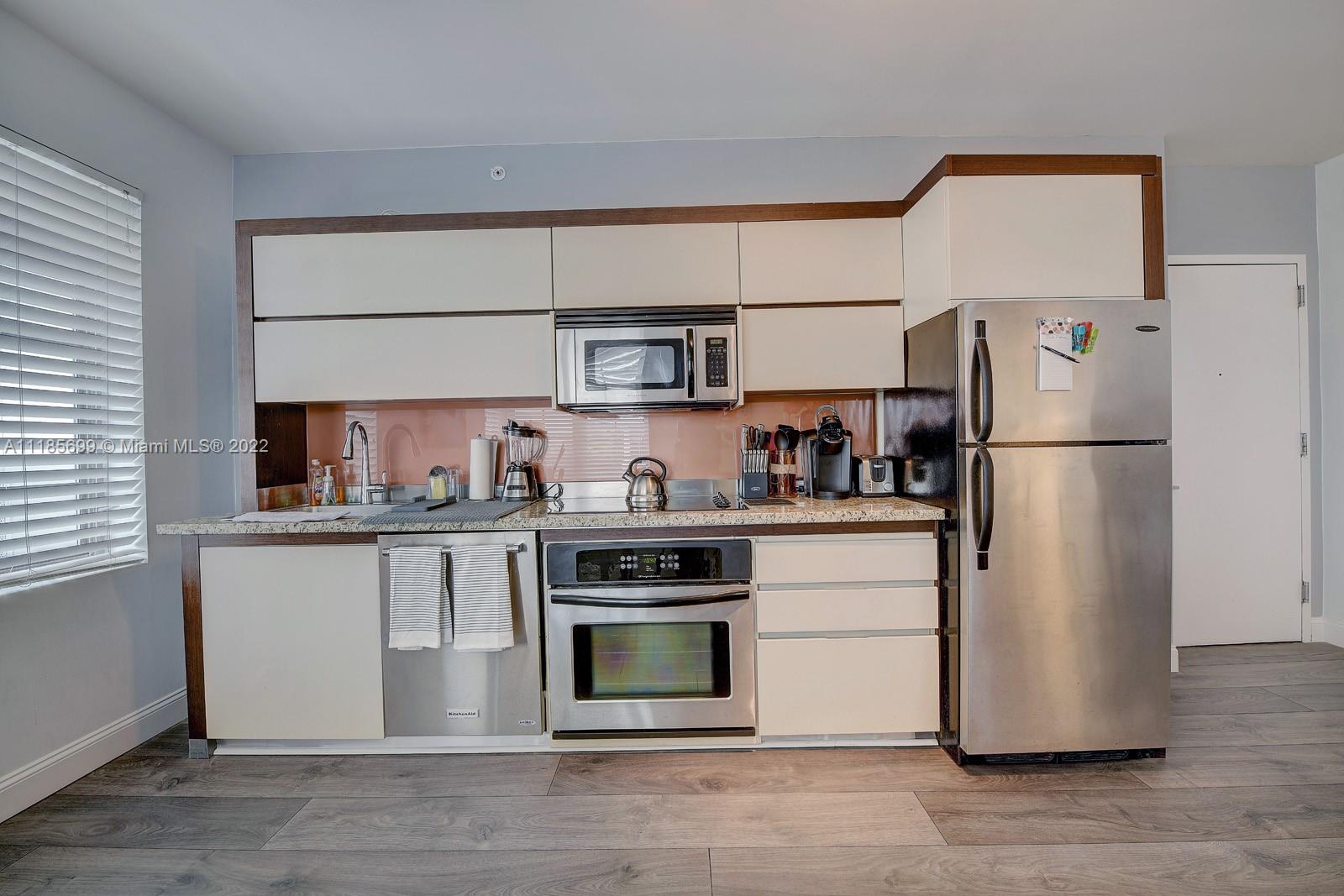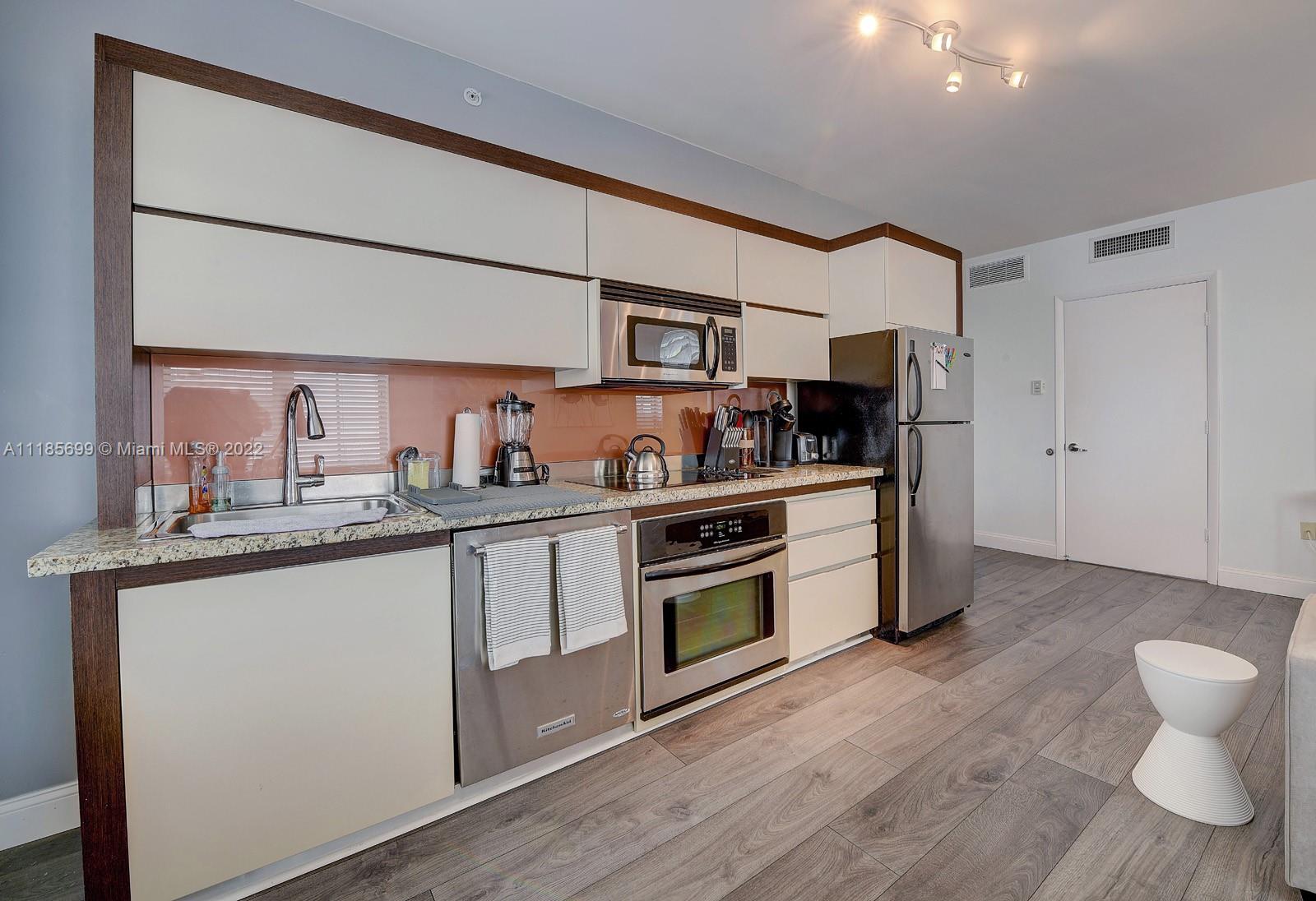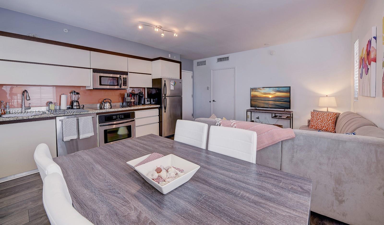 Top floor corner unit, beautifully light, deceptively spacious, wood floors Italian kitchen & bathroom. Laundry in unit.Hurricane impact windows overlooking the internal Art Deco courtyard and fountain. Fabulous Artecity , two heated pools, beach service, gym, concierge, guest parking, pets welcome, 30 day rentals allowed. Exclusive Collins Park neighborhood, 2 blocks to your own beach chairs& umbrella at 21st St between Setai & W hotels. Perfect investment, vacation, or permanent home. Can rent min 30 days . Monthly fees to Condo Assoc & Master $ 339.48 & $ 364.99 - Total $ 704.47 month