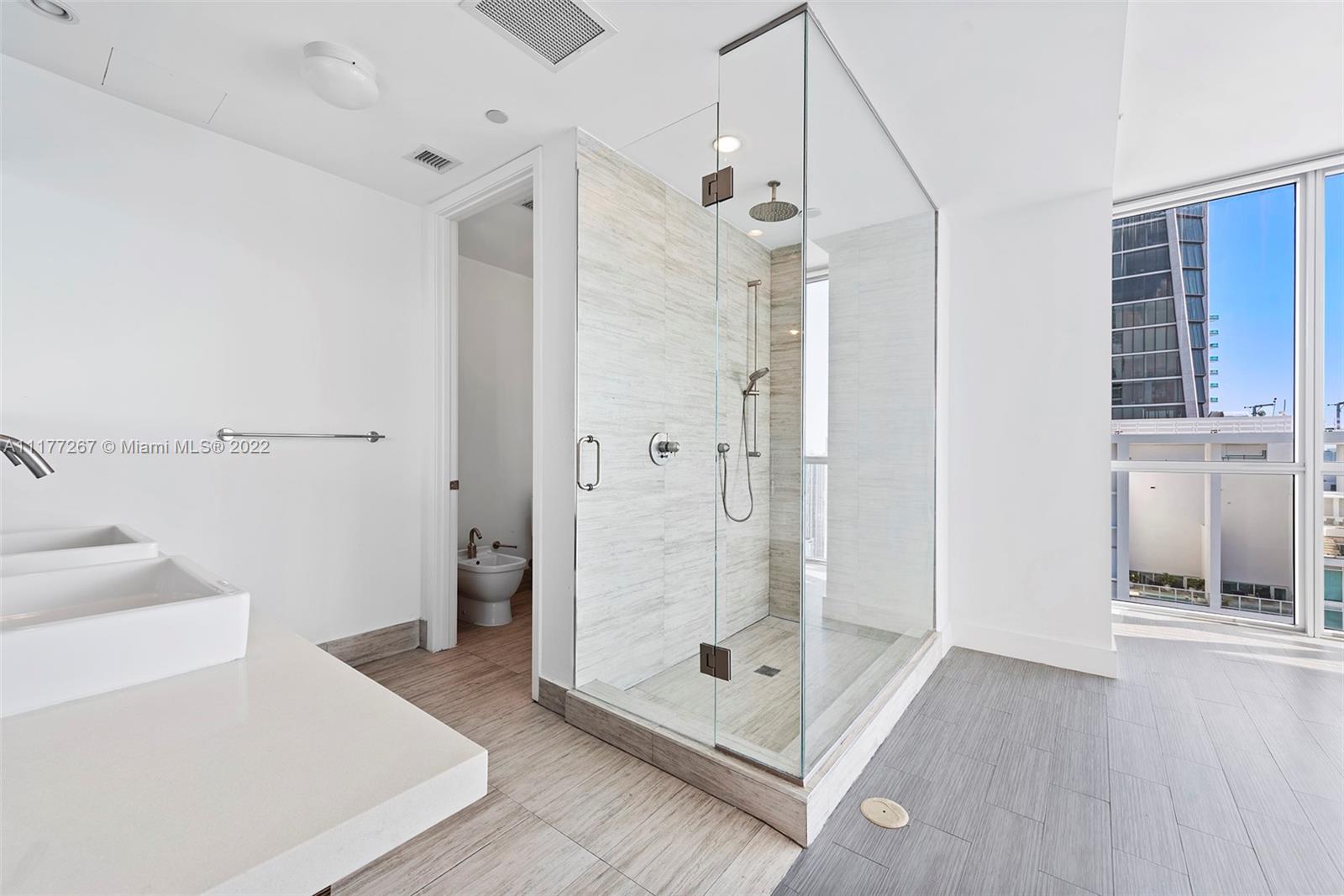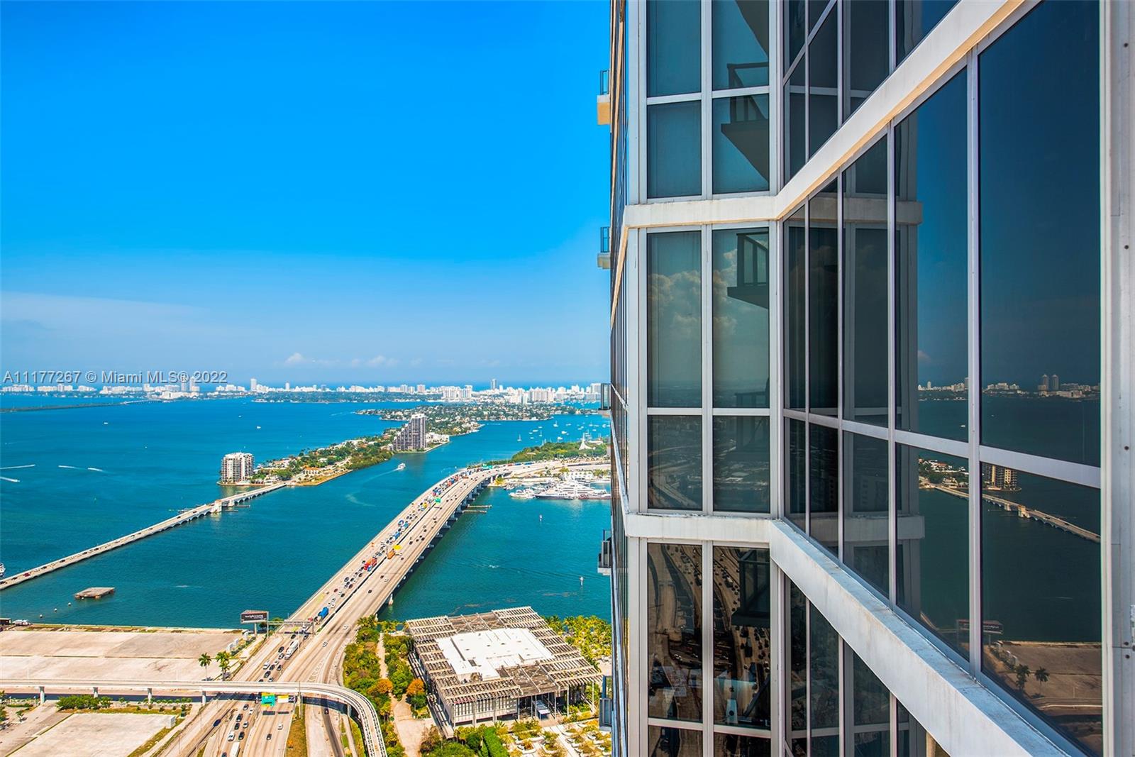 Stunning corner residence at the Marquis Miami featuring wrap around glass walls that unveil breathtaking views of Biscayne Bay, Miami Beach, the venetian Islands to the east and beautiful sunset views and city lights to the west. This high floor chic condo boasts a private elevator lobby, Italian porcelain flooring, Viking appliances, zebrano cabinetry and custom California Closets. The on-site Gabriel Hotel with a separate private lobby is home to the new Gabriel restaurant and poolside champagne bar Bella’s.