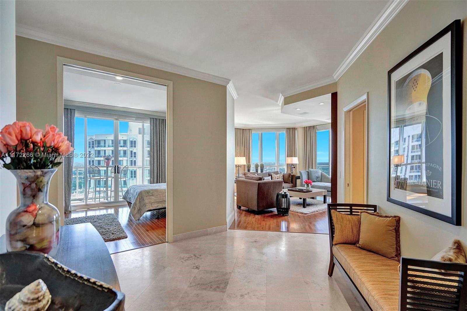 FURNISHED,REMODELED & UPGRADED 3 BD/2.5 BA Lower Penthouse Home in the Sky with 10' ceilings and three balconies for you to enjoy the panoramic views. Motorized Shades in living areas, Brand new 2nd bathroom, upgraded kitchen appliances, new toilets, huge master walk in closet and plenty of storage. Open kitchen with dining table overlooking the waterways and intracoastal. 2 parking spots. Building has been newly renovated by interior designer Steven G. Enjoy the resort lifestyle The Point has to offer: 3 pools, tennis courts, pickleball courts coming soon, spa and cafe at the spa, fitness center, clubhouse, outdoor cafe at the intracoastal pool, BBQ areas, hair salon and a great kids playground right out your front door.