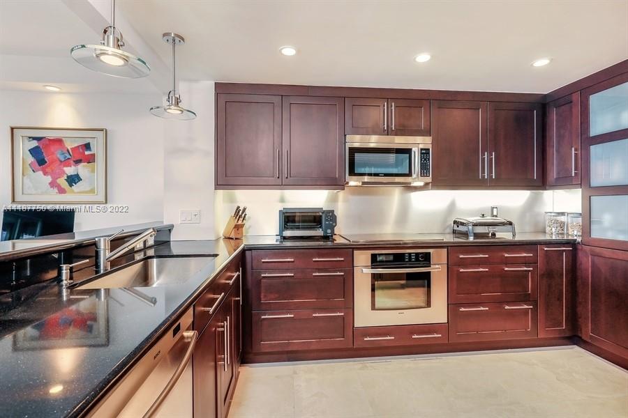 Don’t miss this spectacularly renovated “08 line” with unobstructed open bay, Dinner Key Marina, and downtown Coconut Grove skyline views! This 2 bedroom, 2 bathroom is being sold furnished (minus artwork and personal accessories), and has 1,642 square feet of interior living space. The kitchen is open to the gorgeous bay and city views, has granite countertops, and top-of-the-line cabinetry and appliances. Other features include marble floors throughout the main living areas, motorized shades in the living room, blackout shades in the bedrooms, custom interior doors and moldings, hurricane impact sliding doors and windows, and beautiful lighting. Live on a secure 20-acre guarded isle in Coconut Grove with full services and resort style amenities. Hurry over! This gem won’t last!
