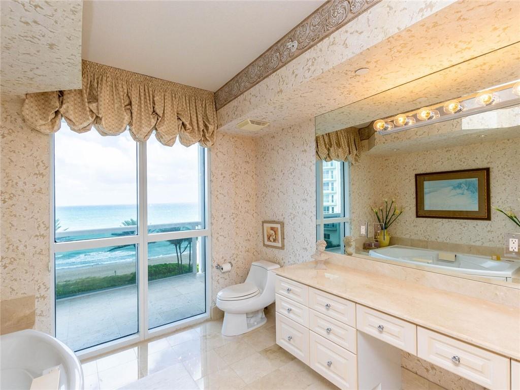 True lux living at your ocean-front condo with a private elevator in the short-stack building Enjoy the beautiful ocean and garden views while you host your dinner party al fresco just a few feet from the waves. Full sensory experience with floor-to-ceiling windows and doors, creating an indoor/outdoor entertainer’s dream. Unit offers double balconies, marble floors, recessed lighting a sun-drenched kitchen with an eat-in dining area with balcony access to enjoy gorgeous sunrise. Main Suite has double bathrooms and a huge walk-in closet. Valet plus 2 parking spots are included. Currently staged as a 2 bed, 3.5 bath with flexibility for a 3rd bdr. Full-service building with 2 pools, a poolside café serving food & cocktails, and tennis courts. This home was never rented! Dog lovers welcome!